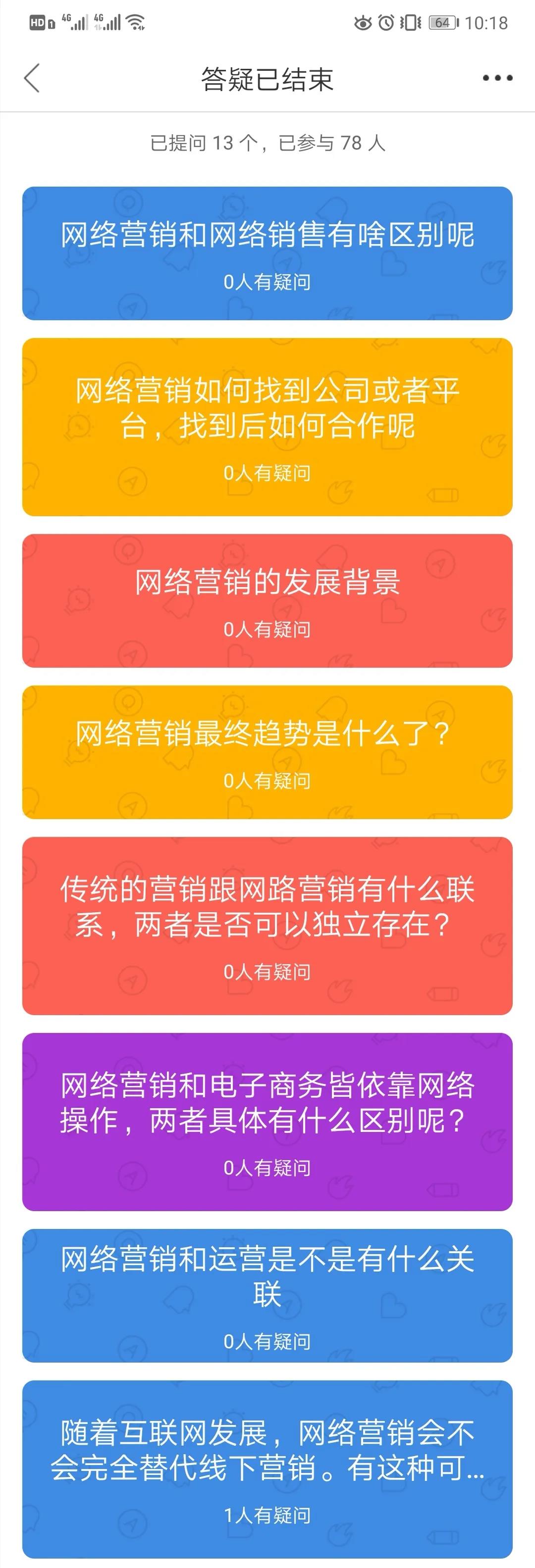 王老师将学生可以讨论的问题在“问答讨论”中以话题形式发布。学生可以回答也可以围观别人的回答,对喜欢的答案进行点赞。参与讨论的学生可以获得讨论得分。
