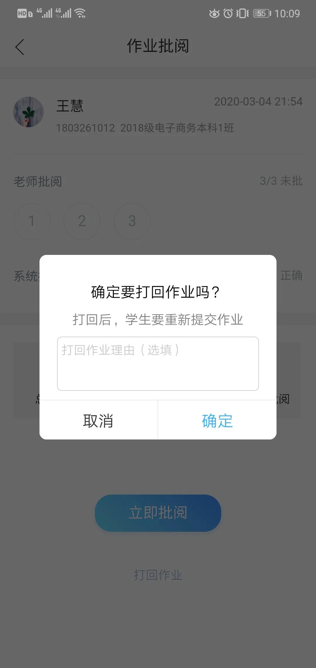 王老师在批改作业中对不合格的作业可进行打回处理,通过王老师QQ或在群聊中对学生所提出的问题进行答疑。