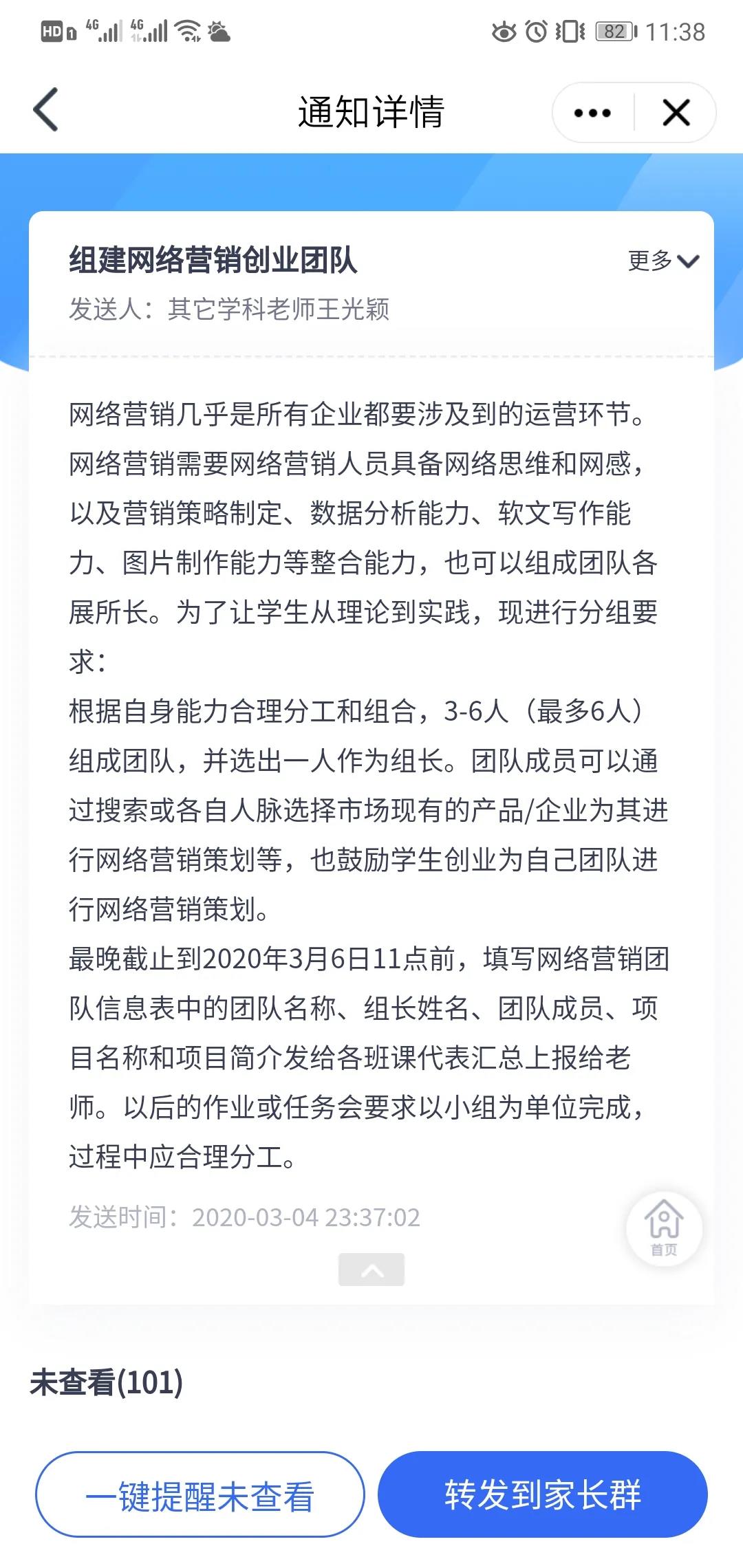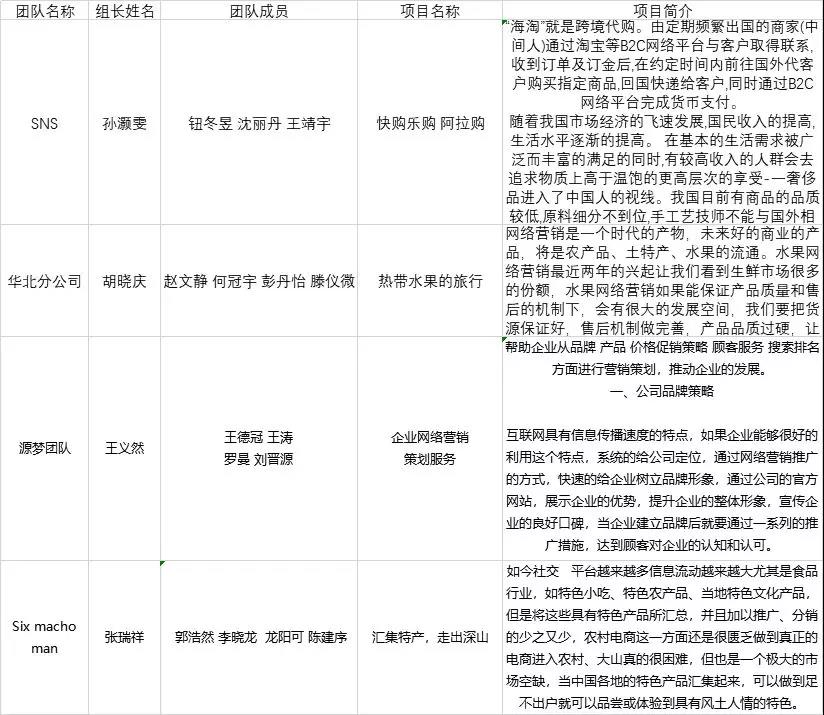 为了更好地让学生对所学网络营销知识从理论到实践的应用,在学期初根据王老师对团队组建的要求,学生自由组合形成团队,上交团队相关信息。教学过程中设有团队任务,学生通过团队合作运用所学知识到团队项目中,团队项目的运营成果随时汇报,并作为平时考核的重要依据。