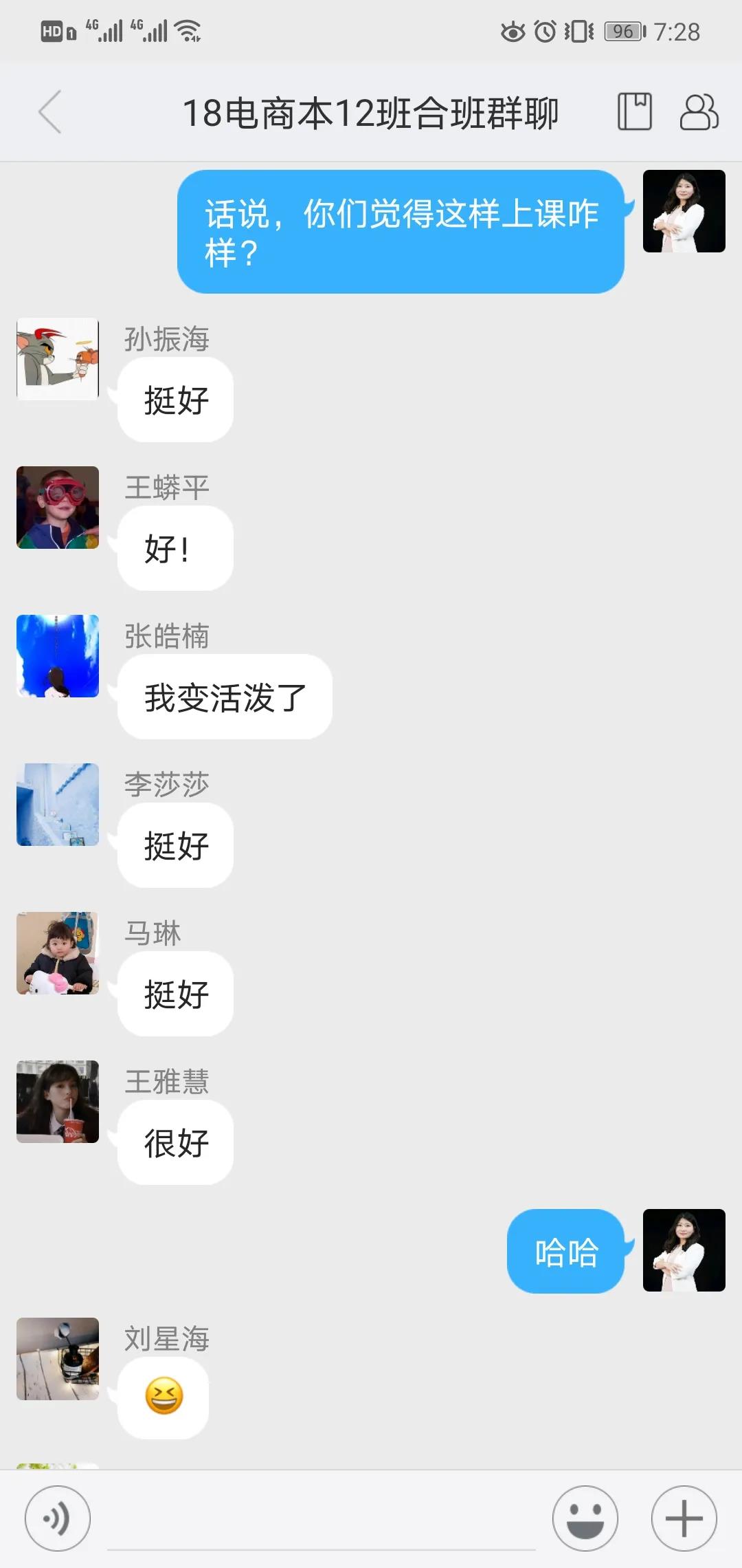 通过课程教学中的群聊互动等方式,学生学习兴趣和参与度很高,有的同学在网络授课中性格都变得活泼了,并且学生学习满意度和听课专家评价较高。