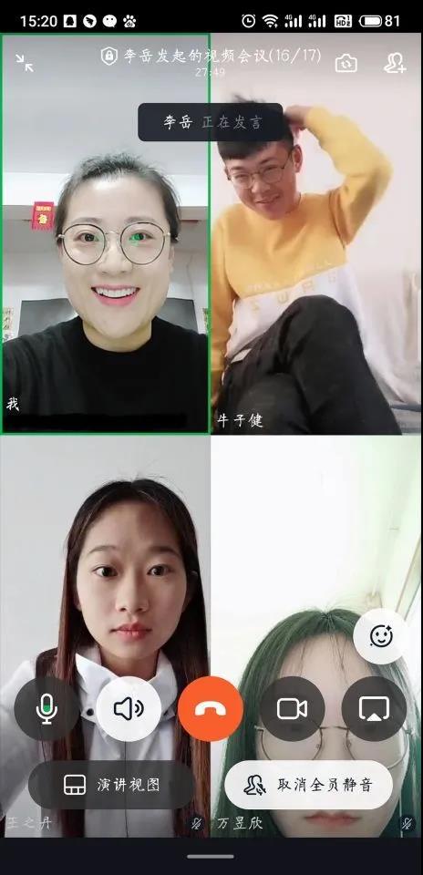 本着“平等交流、发现问题”的原则,座谈会在轻松愉快的氛围中拉开帷幕。李岳老师请同学们谈一下自己在特殊时期网络课程教学学习中的感受与困惑。