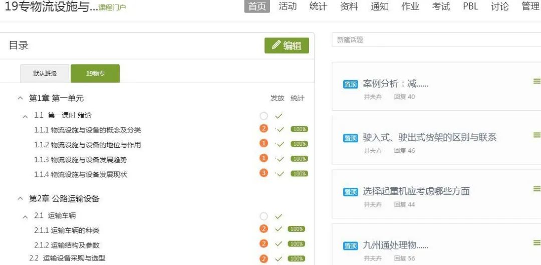 在“停课不停学”的号召下,我们开始通过各种平台软件组织线上教学。《现代物流设施与设备》课程采用了“学习通+QQ+钉钉群”的形式进行,根据具体章节内容选择直播或者是录播的学习。现将本课程的线上教学情况做简单介绍。
