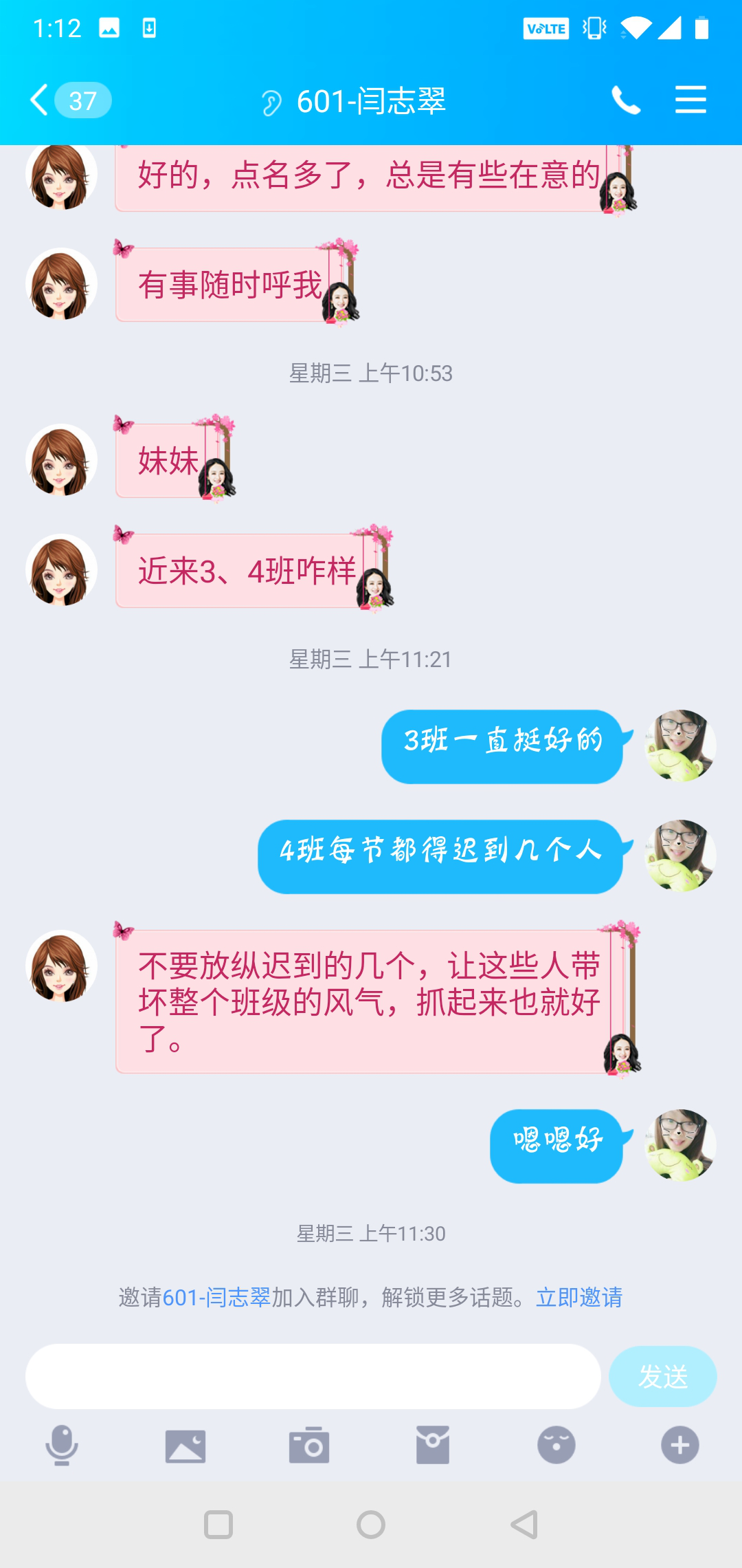 不得不说,大部分同学都是认真的,但是,仍然存在有个别迟到甚至旷课的情况,还有部分同学上课回答问题不积极,有时课堂氛围不活跃,无法面对面的与每一位同学进行沟通与交流,我认为,这是网课最大的问题所在。