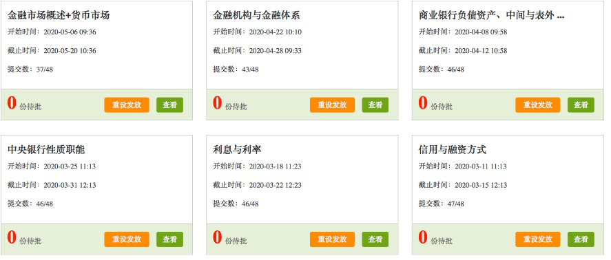 《金融理论与实务》每周一次课,比我们平时的每周两三次课的密度要小些。课的进程就会相对来说慢下来,对于学习自觉性好的同学是会有利于他们巩固学过的知识,但对于自觉性差的同学由于少了监督,少了课程的时间他们可能会相对懒散些。上了12周课后感觉从刚开始的慌乱中已经慢慢适应过来了,也慢慢发现了网课的些问题。