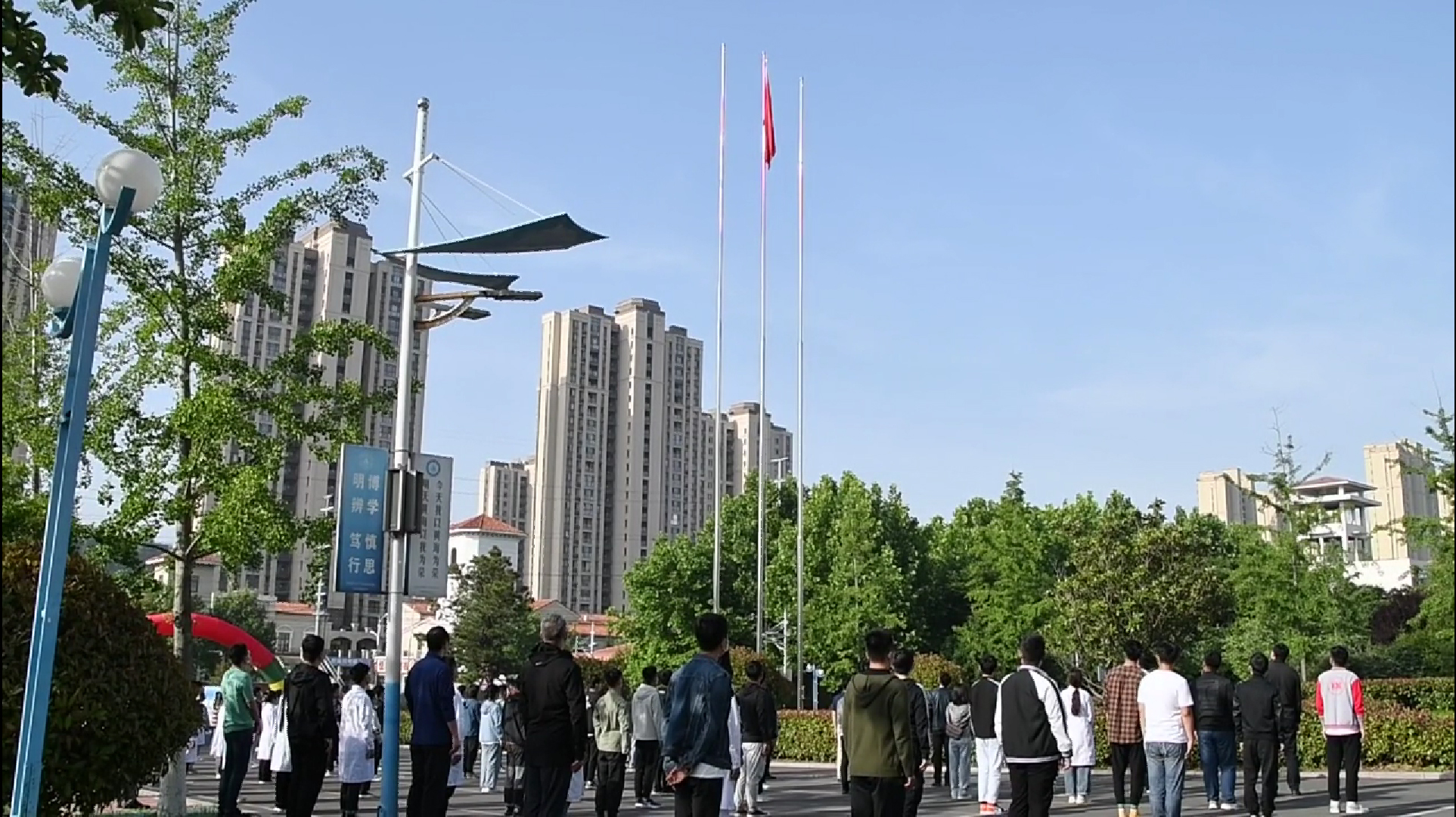 6月1日,是青岛黄海学院返校复课第一天。迎着清晨的第一缕阳光,全体在校领导、老师,及所有返校生共同在知新楼前举行了一场特殊的升旗仪式。伴随着雄壮的国歌声,鲜艳的五星红旗,冉冉升起。