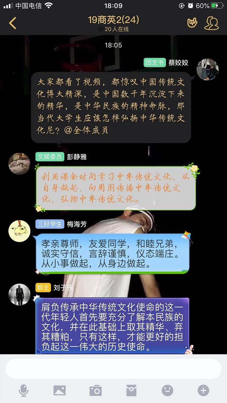 六月是传统文化日,为了让同学们深入了解和怎样传承、发扬中华优秀传统文化,19级商务英语本科2班全体同学在6月2日开展了“承文化之帆,担文创之责”的主题班会课。