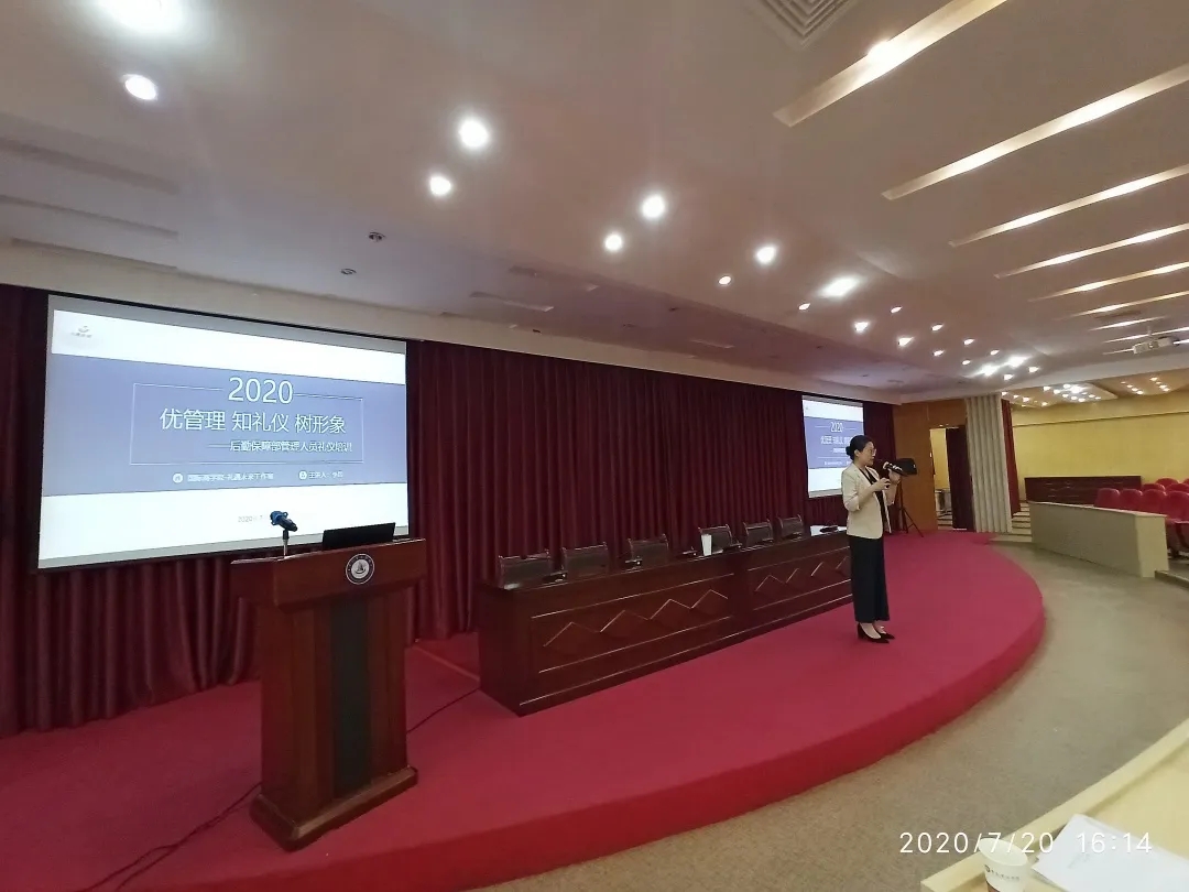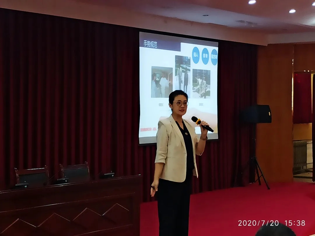 7月20日,我校后勤保障部全体员工在知新楼一楼西报告厅举行了服务礼仪系列专场培训。国际商学院“礼遇未来”工作室承担了此次项目的全部培训任务,本次培训共分两场:《“礼”从于心 “爱”在黄海——后勤人员服务礼仪》、《优管理·知礼仪·树形象——后勤保障部管理人员礼仪培训》,旨在提高后勤保障服务质量和服务礼仪规范程度,提升全校师生的满意度,为后勤保障部服务形象打下良好的基础。