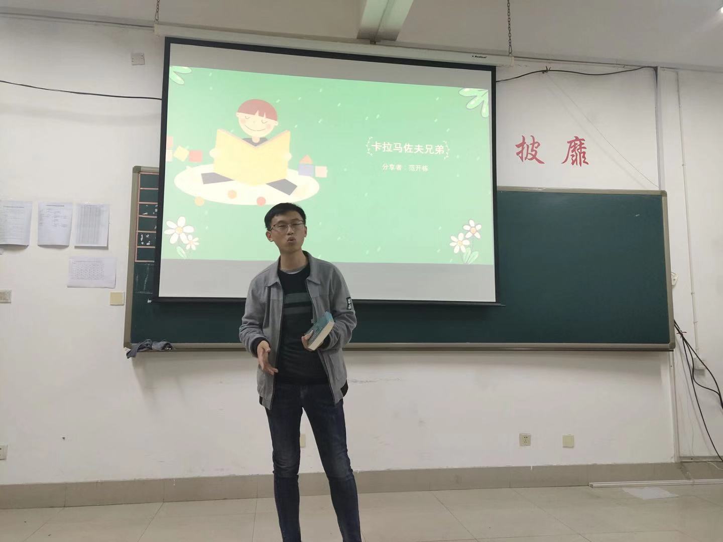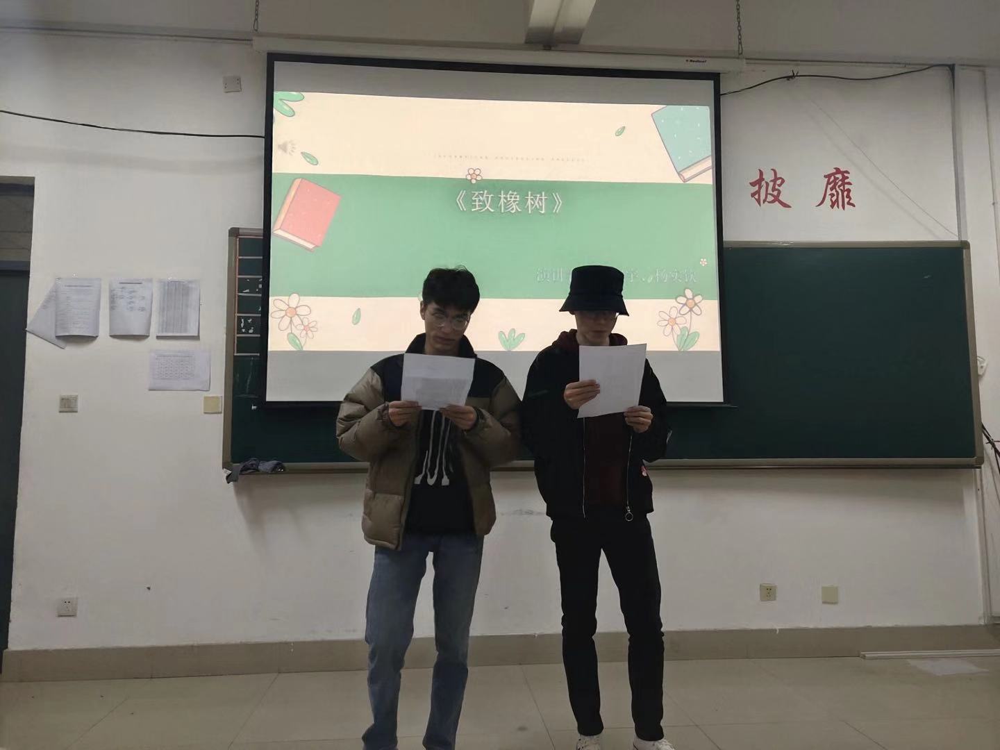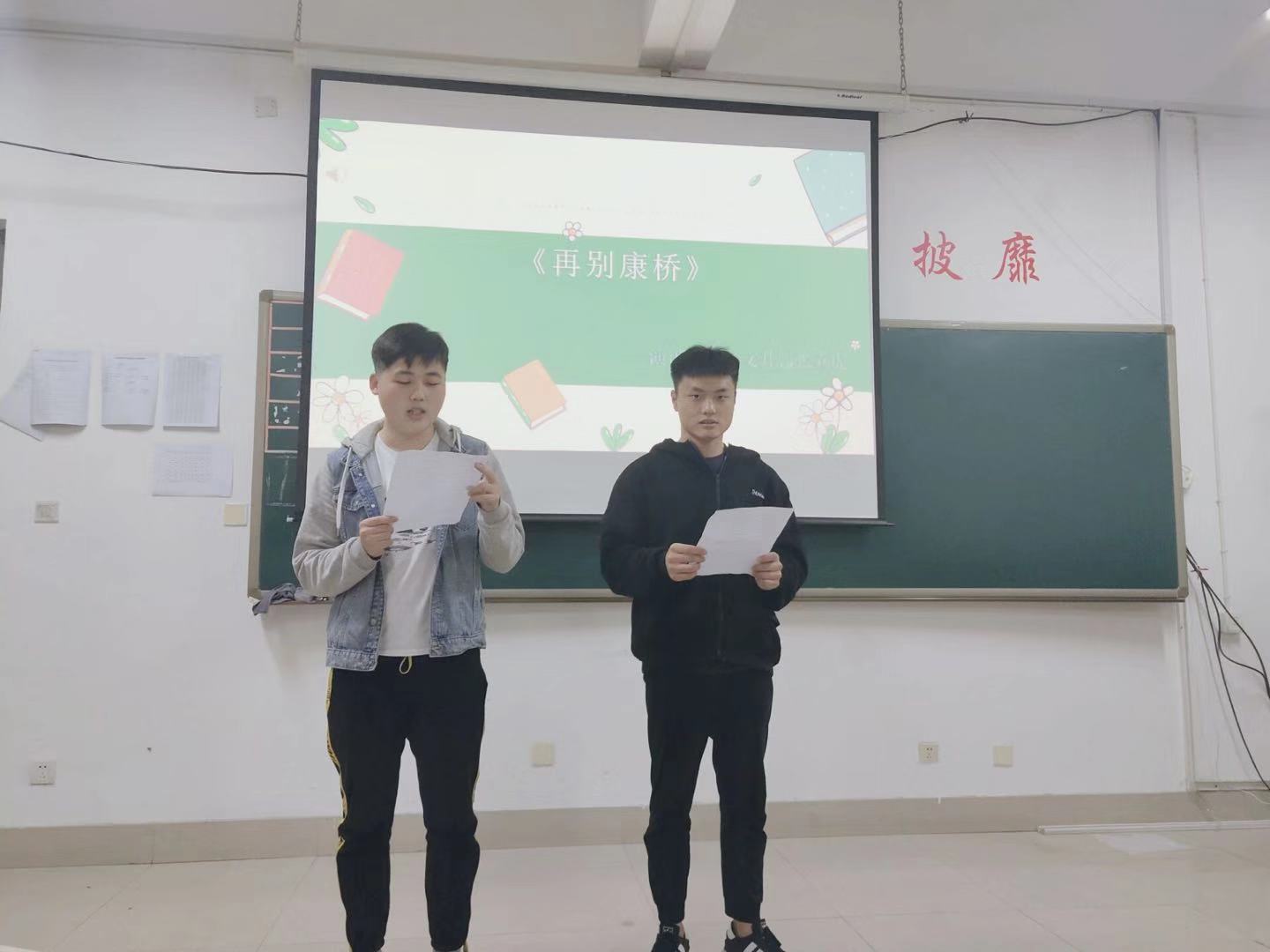 本次活动共分为图书分享、诗歌朗诵、知识抢答和才艺表演四部分。读书会伊始,主持人以一句来自《罗马假日》的英文长句向大家提问。刘心雨同学率先举手并完整的翻译出这句话