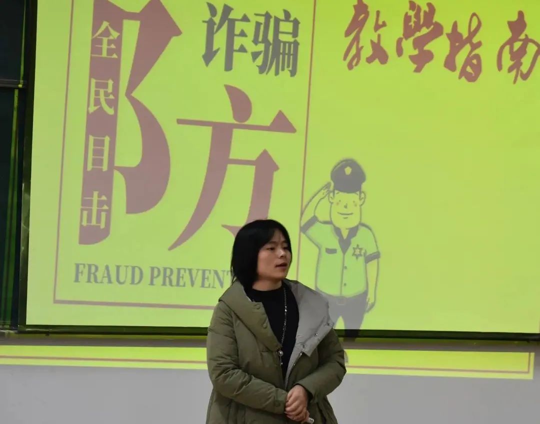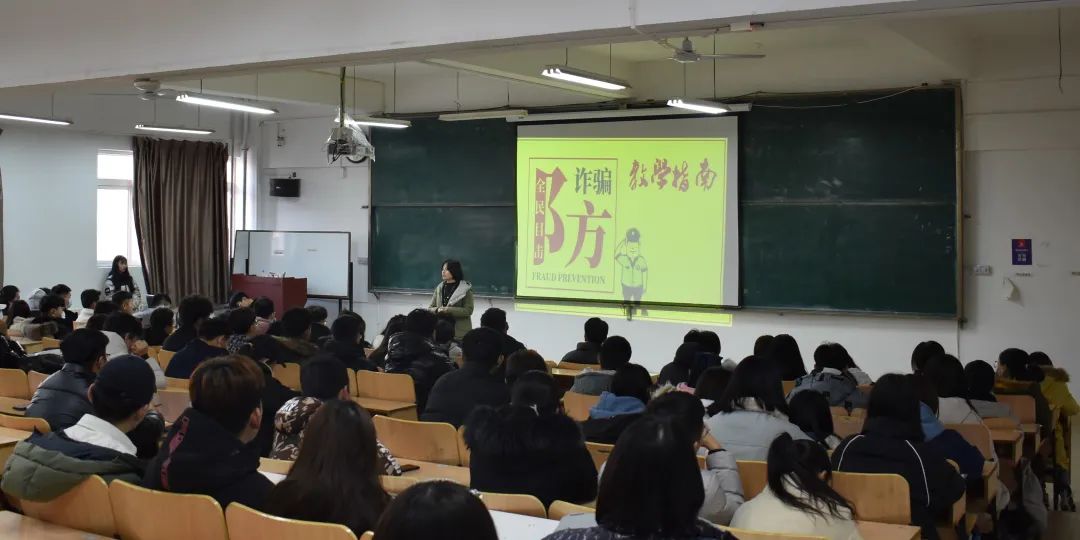 刘奕蔓院长为大家讲解诈骗的九大类型(仿冒身份类型诈骗、购物类、活动类、利益诱惑等),播放诈骗团伙诈骗过程的相关视频,总结各大类型诈骗基本流程,结合自身的受骗经历指导大家如何有效避免上当受骗,提高防骗意识。