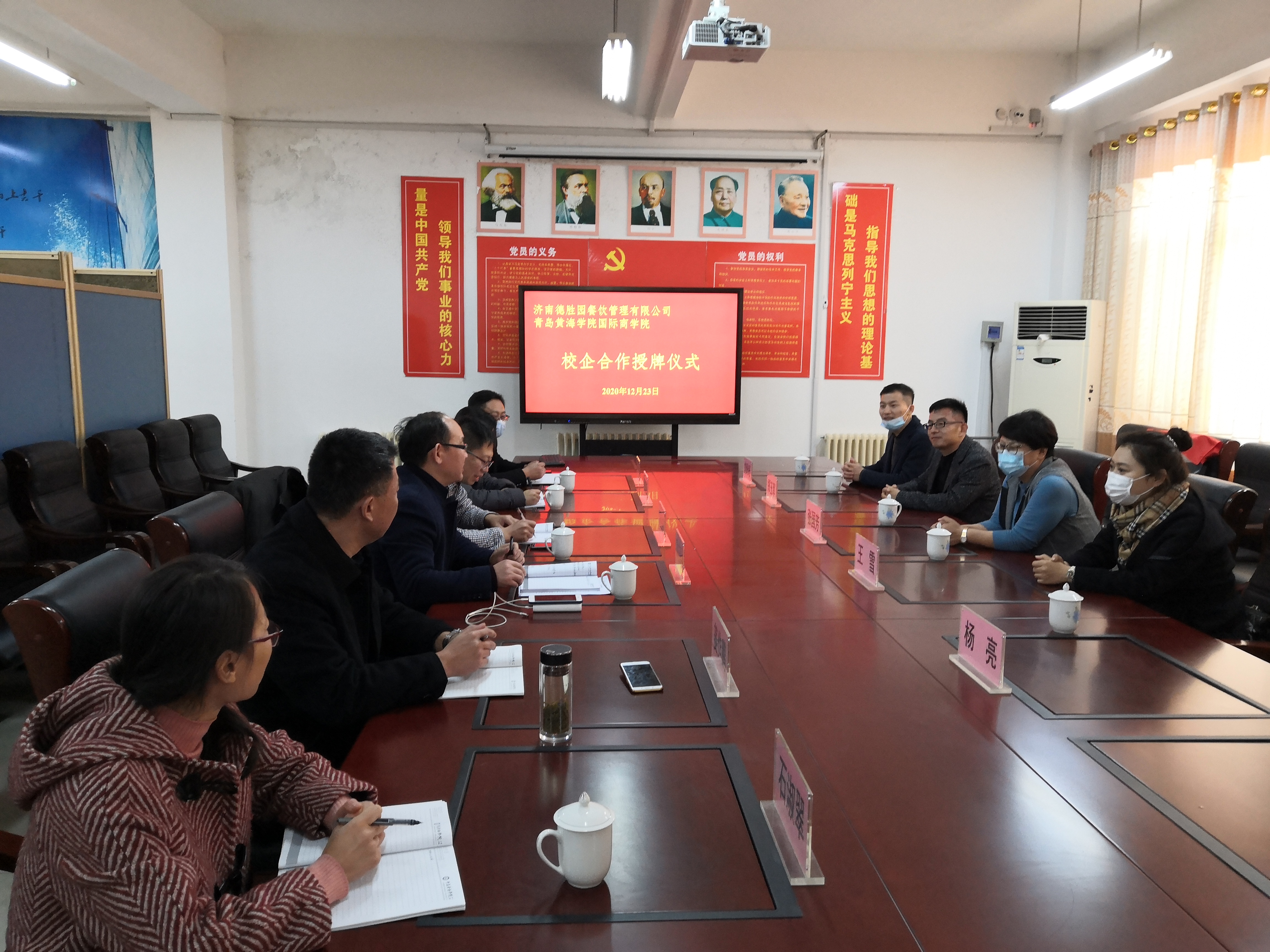 会议由副院长孙守强主持。双方首先介绍了各自基本情况:孙在福院长对学校及国际商学院的基本情况做了介绍;张国芳总监对企业的运营模式做了介绍,并对学生培养晋升渠道进行了讲解说明。