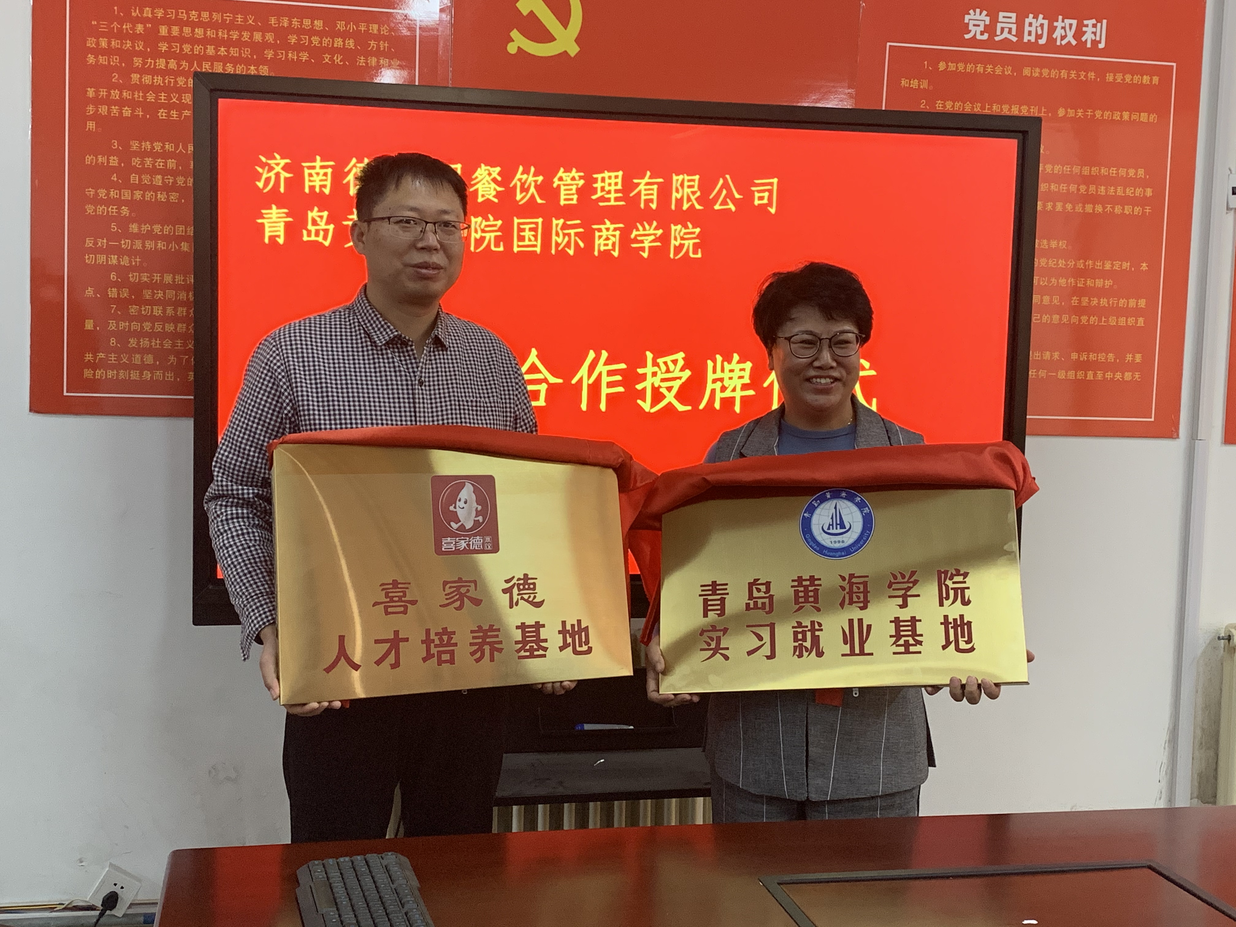 最后是授牌环节:校企双方相互赠送“青岛黄海学院实习就业基地”、“喜家德人才培养基地”,标志着双方合作的正式开始。期待未来的深入合作,能够为校企双方、学生成长成才赋能。