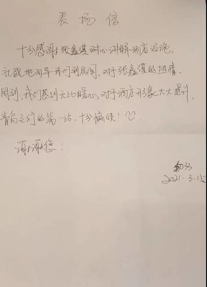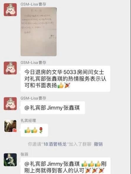 同学们初次体验岗位,有憧憬,也有压力。实习指导教师在与学生沟通交流过程中,既注重职业理想的实现,又给予学生面对困难的勇气、信心和力量,帮助其建立积极向上的人生态度,实现实践育人的目的。同学们在岗位伊始,就以极大的热情和态度融入岗位。班长张鑫琪在入岗不到一星期就得到了客人的书面表扬,用实干诠释了酒店人的工作价值和意义,为全班同学树立了榜样。