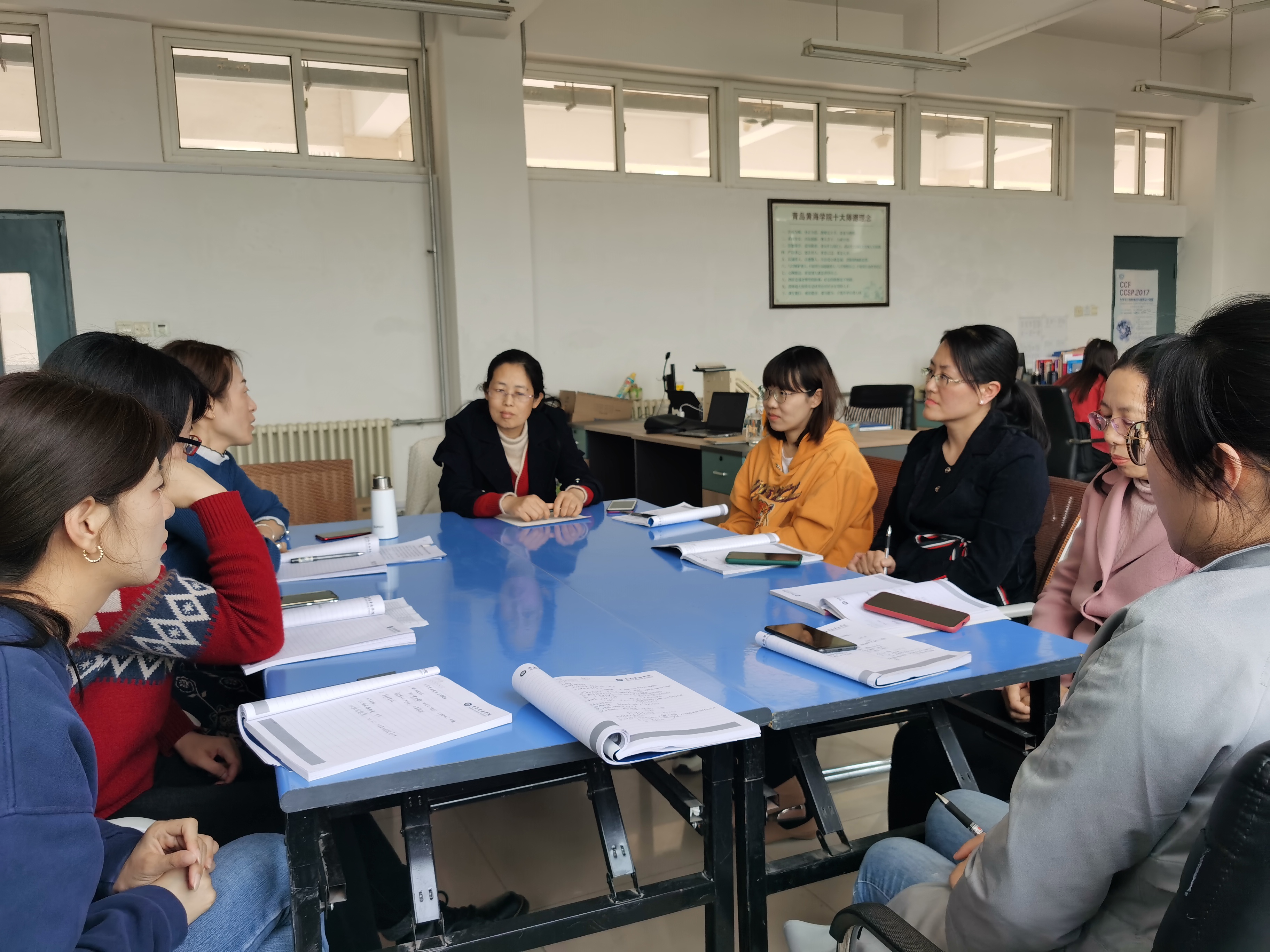 会议进行过程中,大家发言积极、氛围良好、讨论热烈。本着对外语正确发展方向的坚持和各位课程组长的模范性带领,系部发展一定向好!
