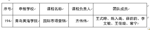 近日,山东省教育厅(省委高校工委)发布“关于2021年山东省普通本科教育课程思政示范课程、普通高等教育教学研究示范中心评审遴选结果的公示”。我院齐伟伟老师主持的课程《国际市场营销》名列榜中,入选2021年山东省普通本科教育课程思政示范课程。