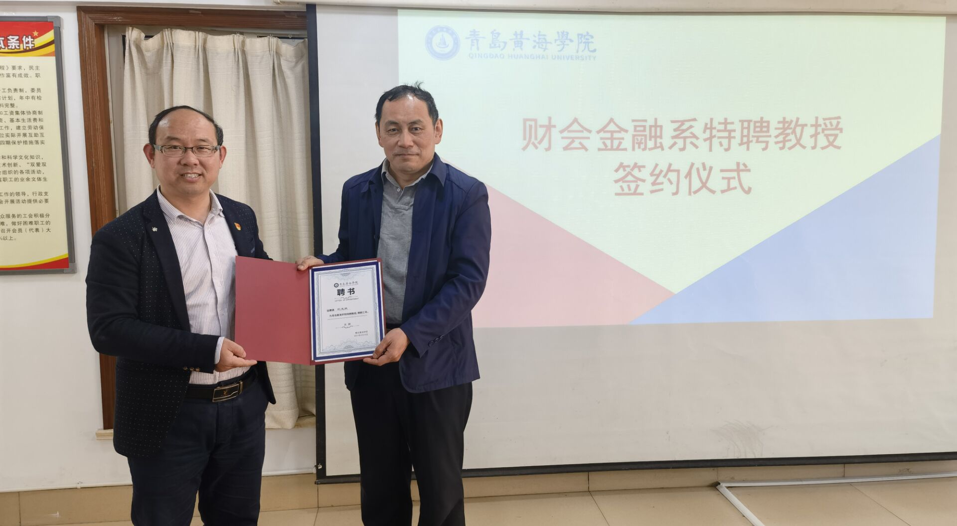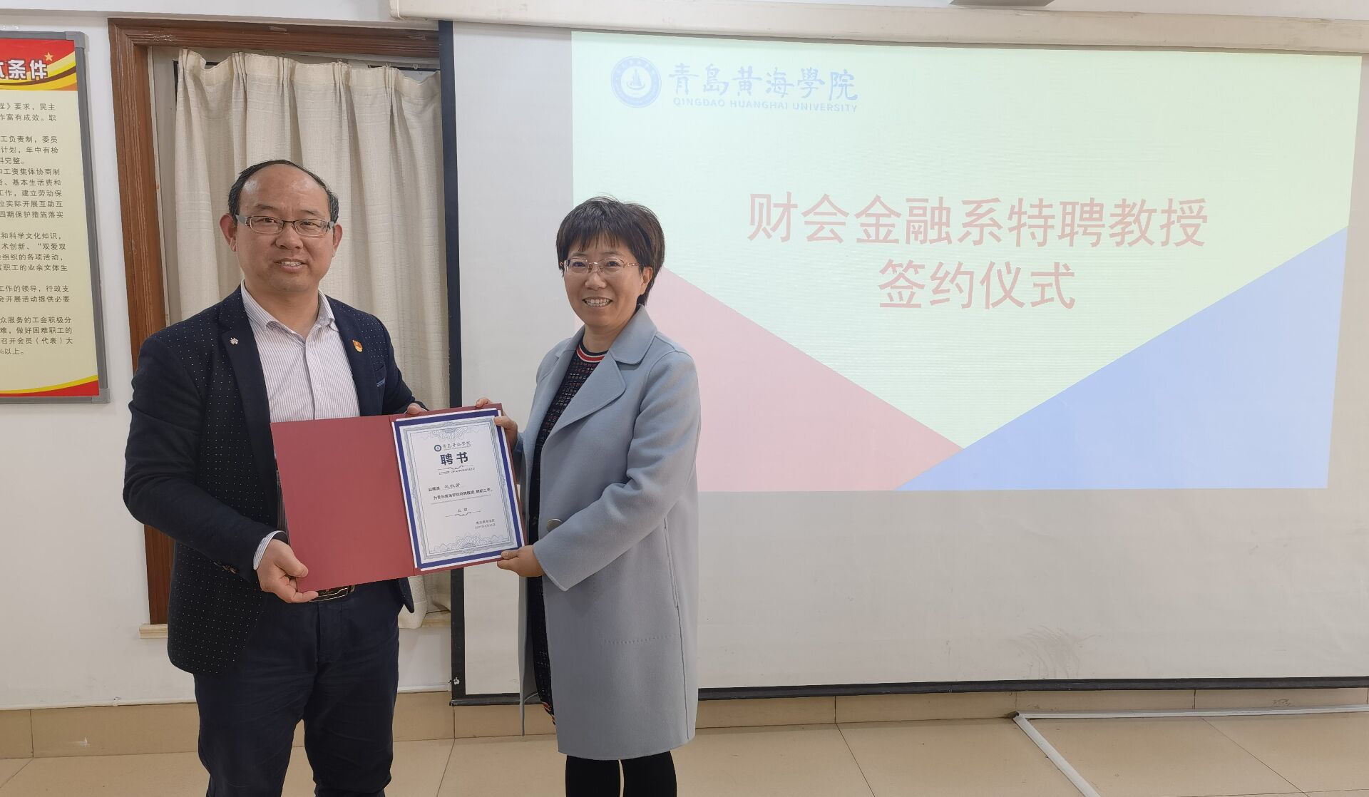 国际商学院财会金融系于2021年4月15日在知新楼二楼会议室举行了中国石油大学(华东)纪光欣、范秋芳两位教授的聘任签约仪式。国际商学院副院长孙守强、财会金融系主任姜作鹏、副主任孔凡娜参加了此次聘任仪式。