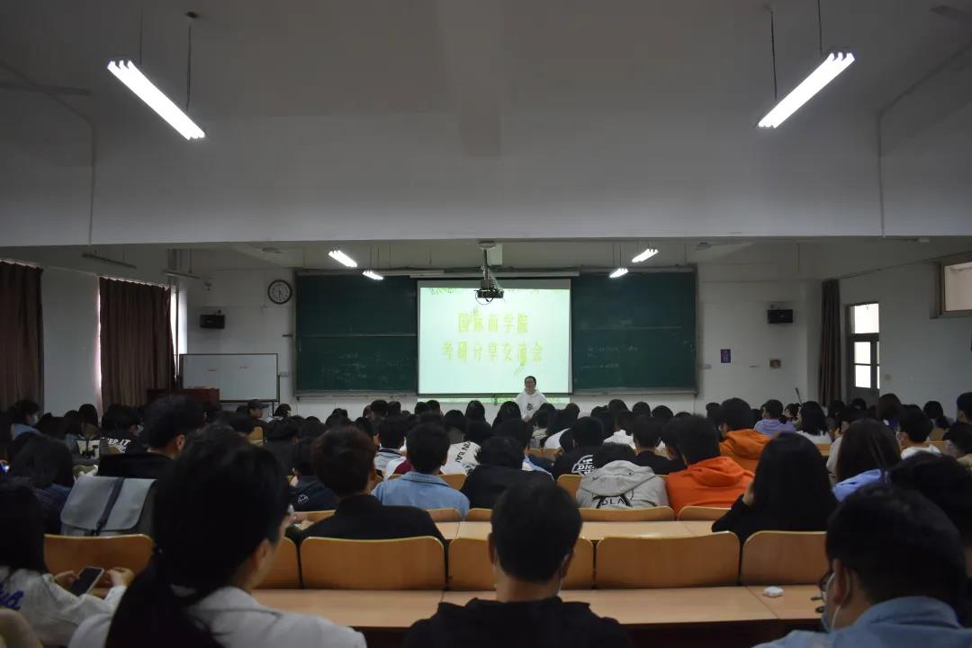 为分享成功经验,帮助同学们树立正确的奋斗目标,增强面对考研的信心,国际商学院于2021年4月25日,在知新楼3楼东配阴举行了“国际商学院考研分享交流会”。参加会议的有2018级互联网金融本科1班、2020级物流管理专升本1班、2020级酒店管理专升本1班、2020级酒店管理本科1班、2020级酒店管理本科2班。本次分享会邀请了2021届考研优秀学生代表分享自己的考研经验和心理路程。