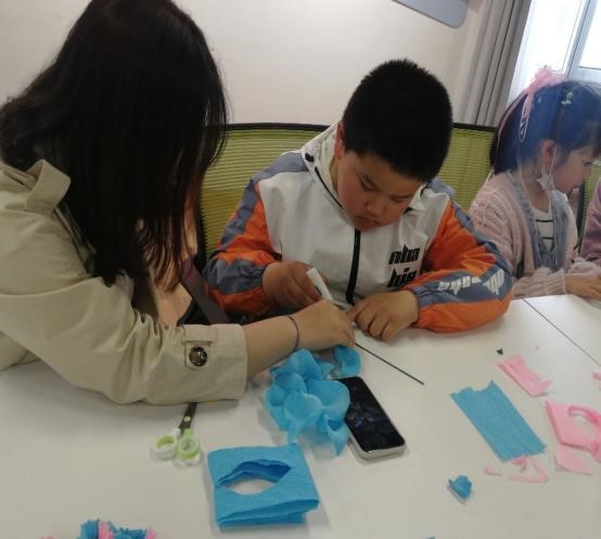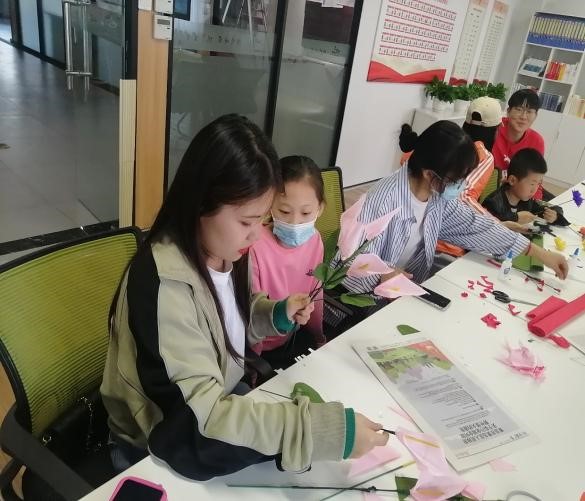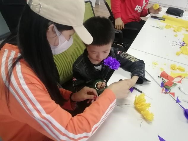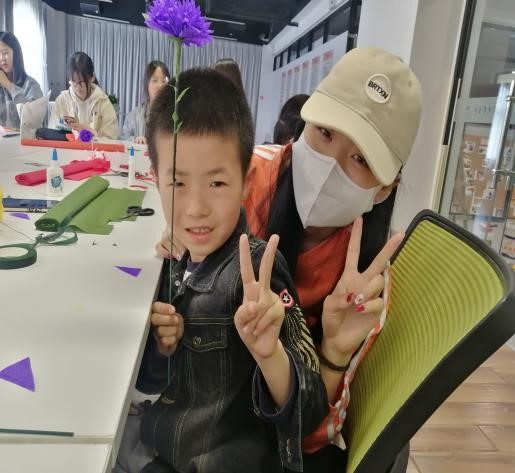 为确保志愿服务活动质量,参加活动的志愿者们提前进行了手工花制作交流共享的准备。在活动中,两协会的志愿者们手把手,一步一步地教小朋友们制作手工花,小朋友们学习制作的整个过程认真努力,整个活动充满了欢声笑语。