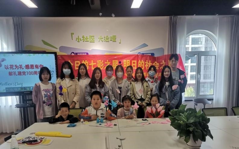 莫泊桑说:“人生最美的情景出现在我们怀念母亲的时候,只是因为我们的血液中流淌的,我们的言行举止中流露的那份独特而超凡的东西,都来自母亲的辛勤哺育和言传身教。”在母亲节到来之际,为献礼建党100周年,2021年5月9日下午,青岛黄海学院国际商学院青年志愿者协会以及会展创新设计协会到长江路街道峨眉山路社区,开展了《以花为礼·感恩有你》母亲节手工花制作的活动,共同祝福天下母亲的同时,也共祝祖国母亲繁荣昌盛!