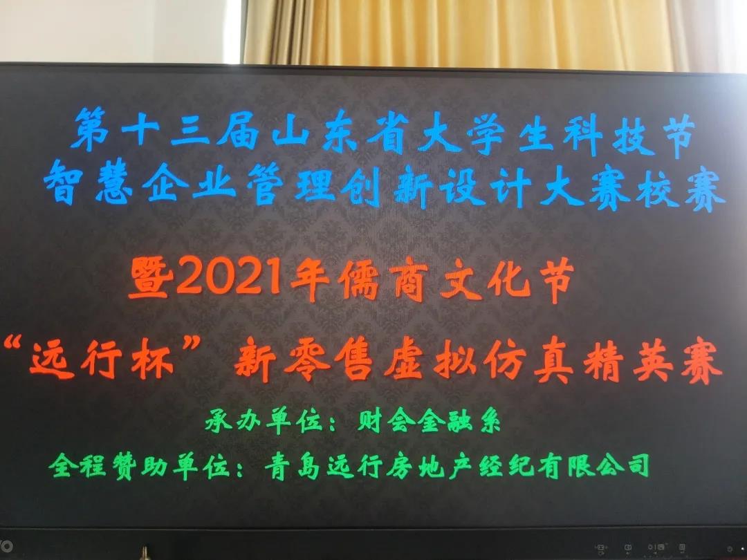 首夏犹清和,芳草亦未歇。近日,由财会金融系承办、青岛远行房地产经纪有限公司全程赞助的第十三届山东省大学生科技节智慧企业管理创新设计大赛校赛暨2021年儒商文化节“远行杯”新零售虚拟仿真精英赛完美落幕!