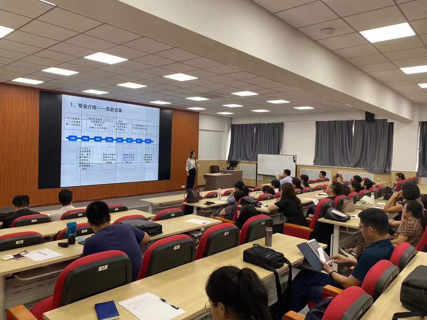 山东财经大学人力资源与组织行为系主任孙立莉教授做了“国家级一流本科专业建设经验与探索”主题分享,孙主任就山东财经大学的经验和做法和与会老师做了沟通和探讨,同时表示本次师资研修将助力院校构建应用型人才跨专业培养,把握人才新脉动,新需求、探索数字经济下的人才培养新模式,加强教师实践教学能力,提高教师实践育人水平,有利于校企共同探讨数字经济时代下的创新型综合人才培养方案。