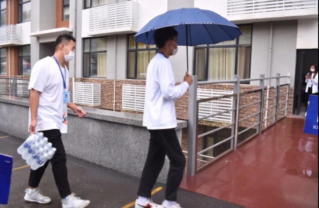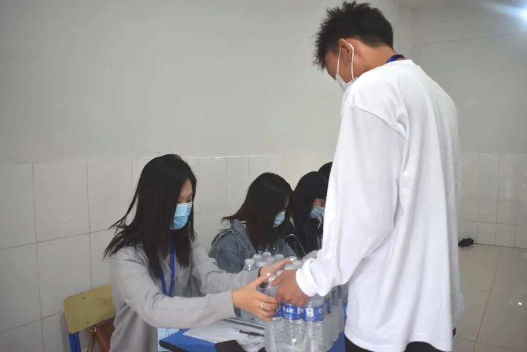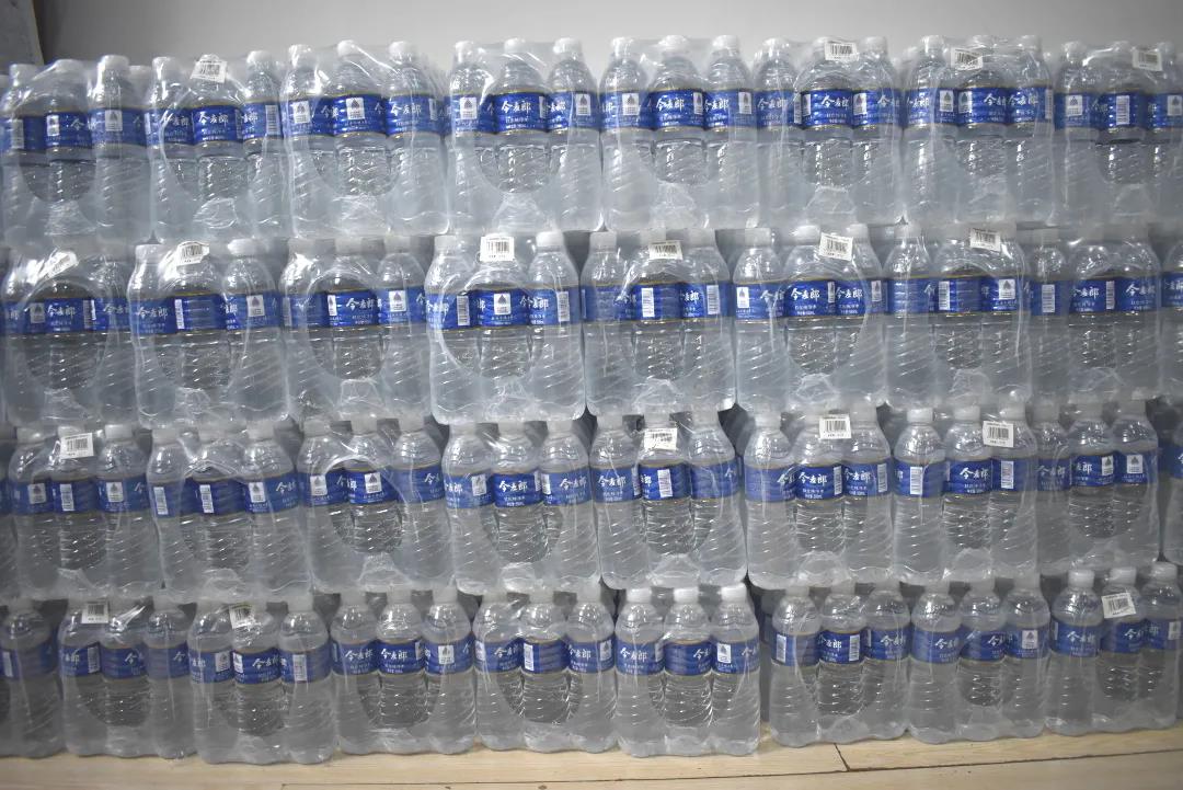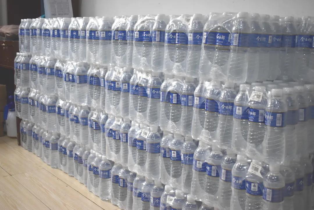校友朱来鹏购买了100提瓶装水,校友李娇娇与刘炳磊于9月3日上午先送来10提水以应急使用,4日上午将剩下90提水也送到学校。