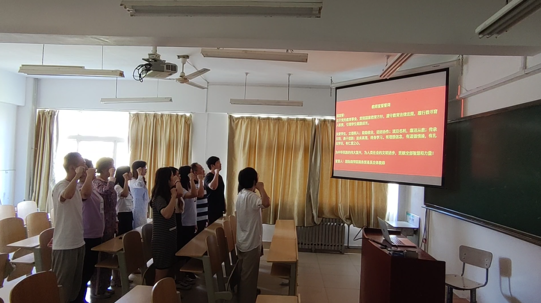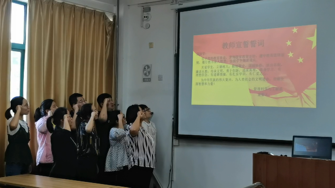 在第37个教师节来临之际,为激发广大教师的工作积极性,增强教师的荣誉感、责任感和使命感,国际商学院隆重举行教师宣誓主题活动。全体教师右手举拳,庄严宣誓,充分体现了躬身俯首甘为梯,春风细雨润繁花的人生追求。用心塑造、用“情”感化、用榜样激励、用人格熏陶学生,切实履行好传承文明、开启智慧、教书育人的职责。