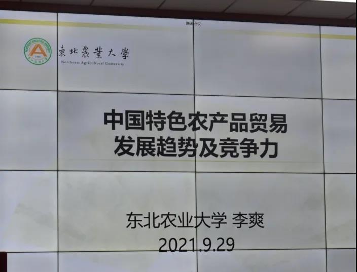 然后由东北农业大学的李爽教授通过线上分享《我国特色农产品贸易发展趋势及竞争力》,内容包括世界农产品贸易格局及特征、中国农产品对外贸易展望以及提高我国农产品贸易对外发展建议,最后对中央一号文件对农产品贸易的有关政策要点梳理分析,让我们更加明白我国农产品贸易发展的形势。