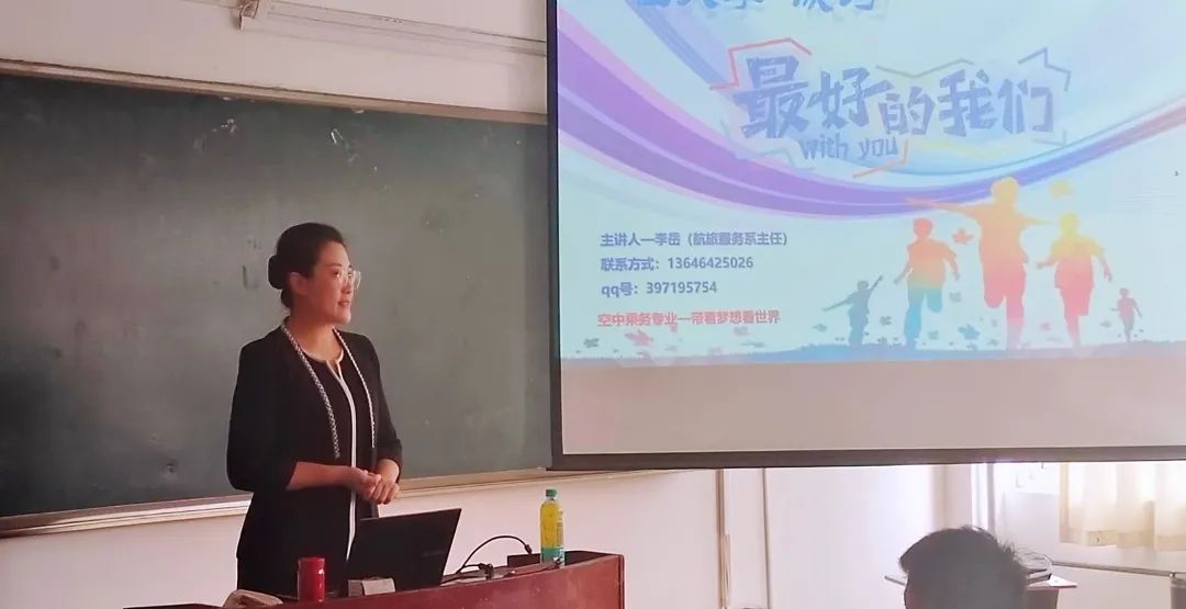 为使2021级新同学能更好的适应大学新生活,更加详细的了解校史校风,明确校纪校规,加强专业认知,培养良好的学习习惯。航旅服务系于2021年9月28日星期二邀请系部主任李岳老师,为2021级空中乘务专业新生做入学教育专题讲座。