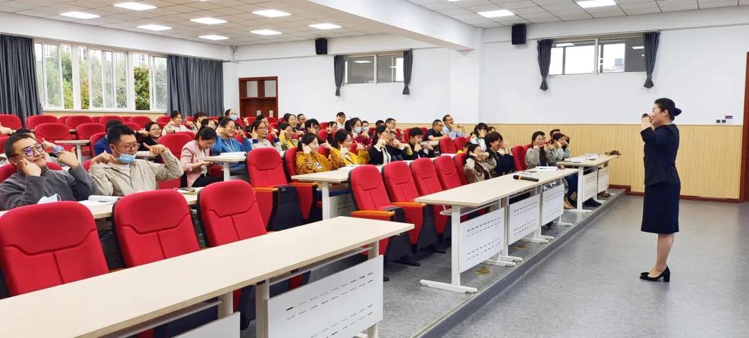 培训刚开始,李老师邀请全体教师进行了微笑操互动。
