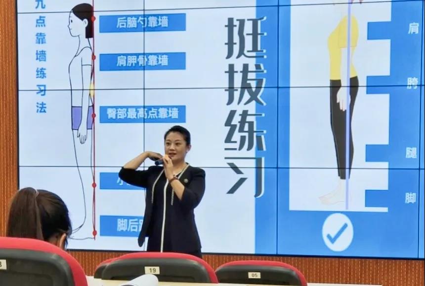 李老师从教师日常坐、立、行的礼仪到教师的着装、饰物礼仪等方面作了细致入微的讲解。她的讲解深入浅出,语言诙谐风趣,赢得了在场教师们阵阵热烈的掌声。