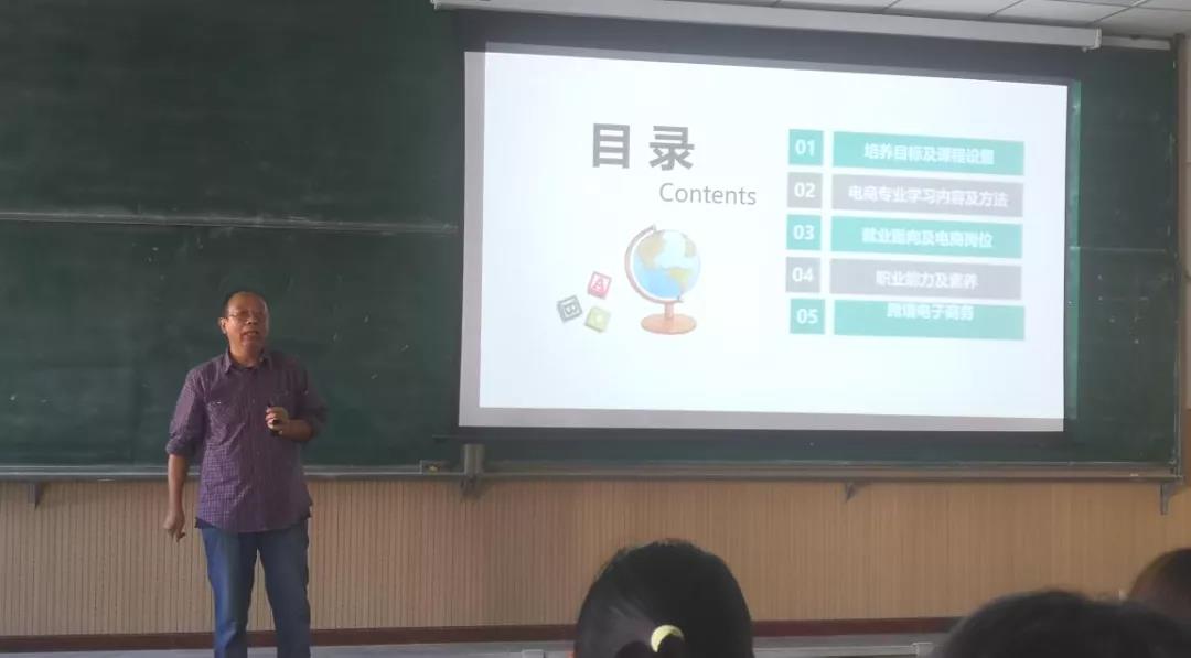 培训会由王光颖副主任主持,电子商务专业带头人赵吉兴教授首先介绍了电子商务的概念,在学生了解了专业内涵的基础上,赵教授进一步介绍了电子商务专业的学习内容和培养目标,结合人才培养目标指导学生培养良好的学习方法,做到勤学苦练、实践创新、不负韶华,点滴积累。在思考中建立自己的思想,并且要求新生保持对新鲜事物的好奇心,不断通过各种渠道获取信息,去粗取精,去伪存真,形成有价值的知识库。赵教授还围绕跨境电子商务的企业用人需求,鼓励学生建立跨专业思维,将多门学科融合性学习,为培养复合型人才打下坚实的基础。
