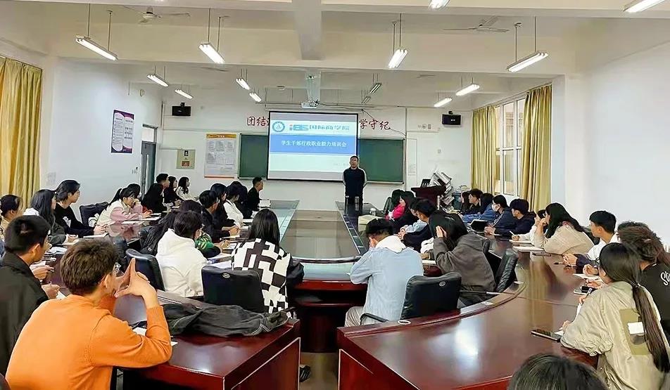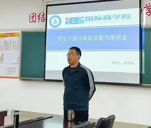 为提升学生会成员的工作效率,优化学生会的工作方法,推动学院更好的建设与发展,国际商学院于2021年10月20日下午在知诚楼314开展学生干部行政职业能力培训会。参加本次会议的有国际商学院部分学生干部、团学干部,本次会议由学工主任陈祥德主持。