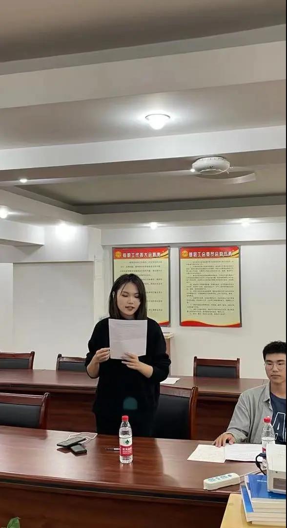 各部员进行抽签并选择自己的方案,每个人对自己的方案进行陈述,说明自己为什么选择这个方案。各部员对各个方案都有自己独到的见解,从不同角度解读阐释了各个方案的优劣势,各位的发言引起了其余成员及观众的阵阵掌声。