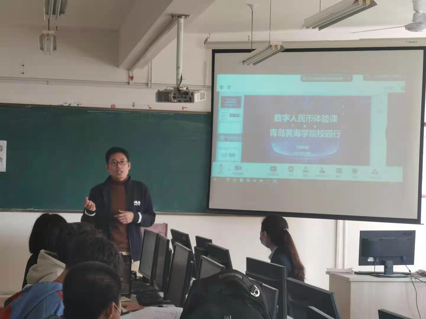 在本次活动中,赵讲师由浅入深,点出数字人民币的定义,为什么要发展数字人民币以及其带给我们的影响和意义。与此同时,中国建设银行工作人员结合建行青岛数字人民币的实际情况进行深入的讲解。随着讲座的进行,赵讲师采取了线上实时操作的方式,同在场听讲座的师生们共同学习。老师和同学们通过数字人民币实践教学平台,跟随赵讲师一步步进行操作学习。最后,由张海滨老师进行了总结与概括。