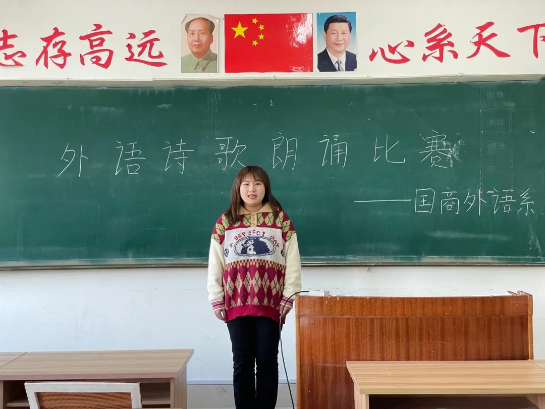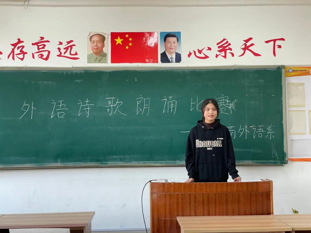 为繁荣校园文化、丰富我校大学生的课余文化生活、激发学生们外语学习热情并感受外国诗歌的魅力,国际商学院外语系于10月27下午2点20分在知诚楼举办以“Youth and Love”为主题的外文诗歌朗诵比赛初赛,外语系全体教师担任评委老师,黄海学院全体报名学生参与比赛。