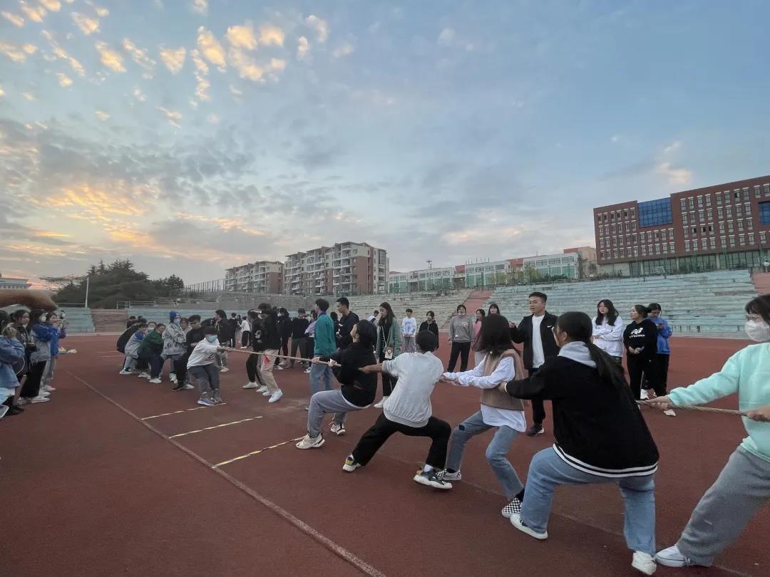 随后,趣味运动会的最后一个项目——拔河,在大家紧张与期待的气氛中如约而至。每个班级中的人员踊跃参与其中,整齐的口号声,激烈的加油声,欢乐的笑声充斥着操场。