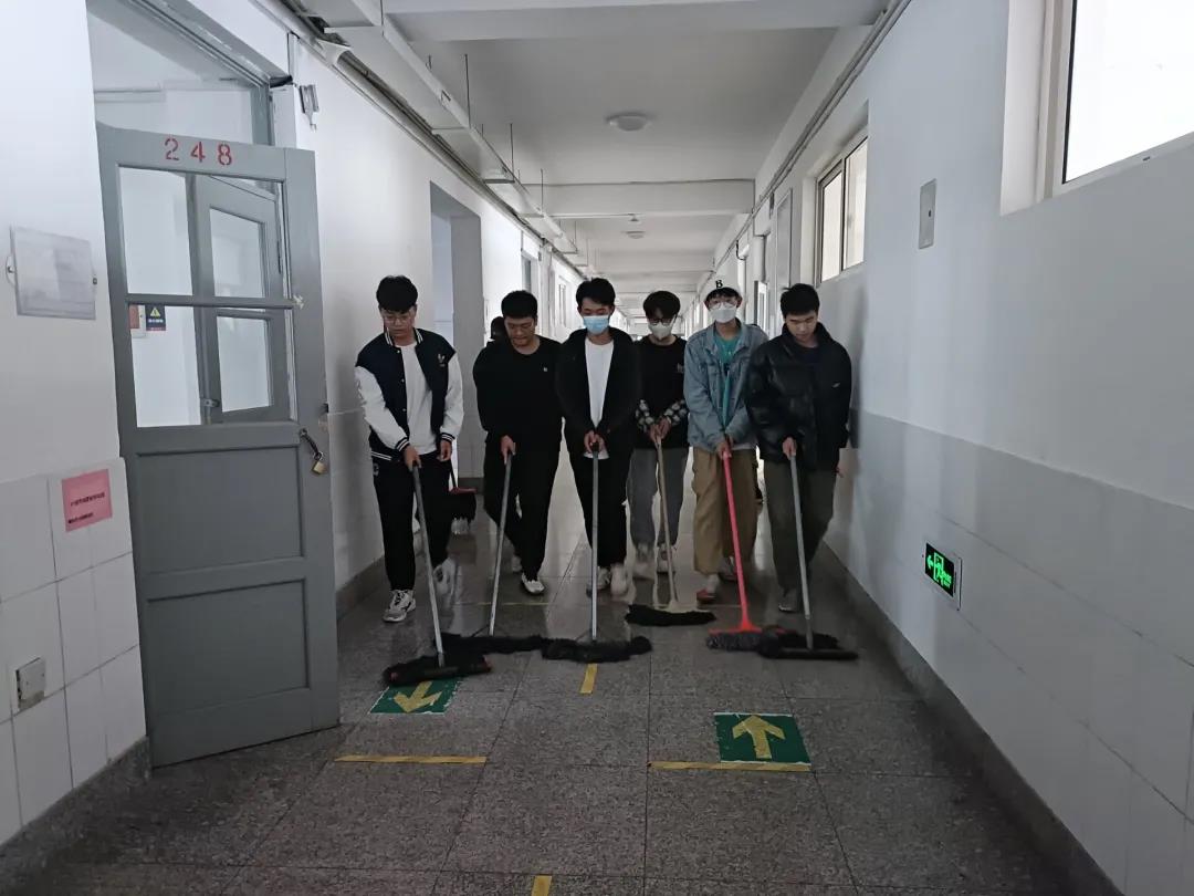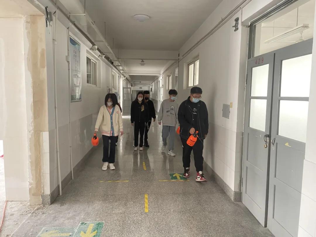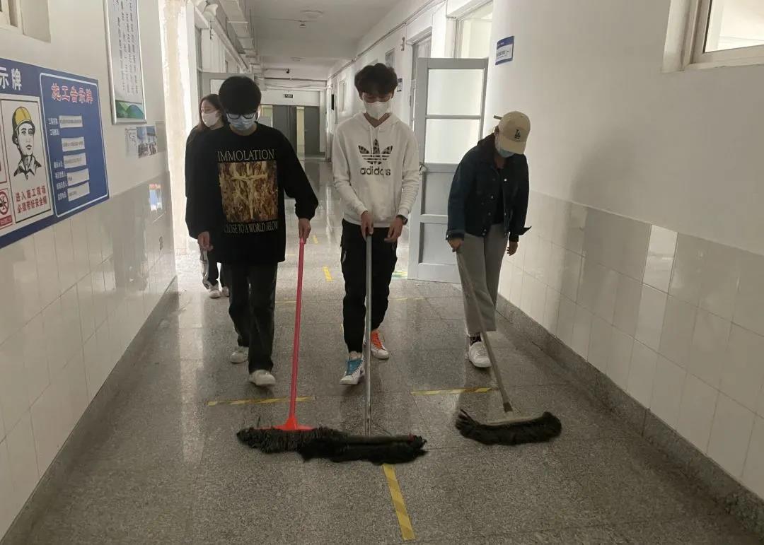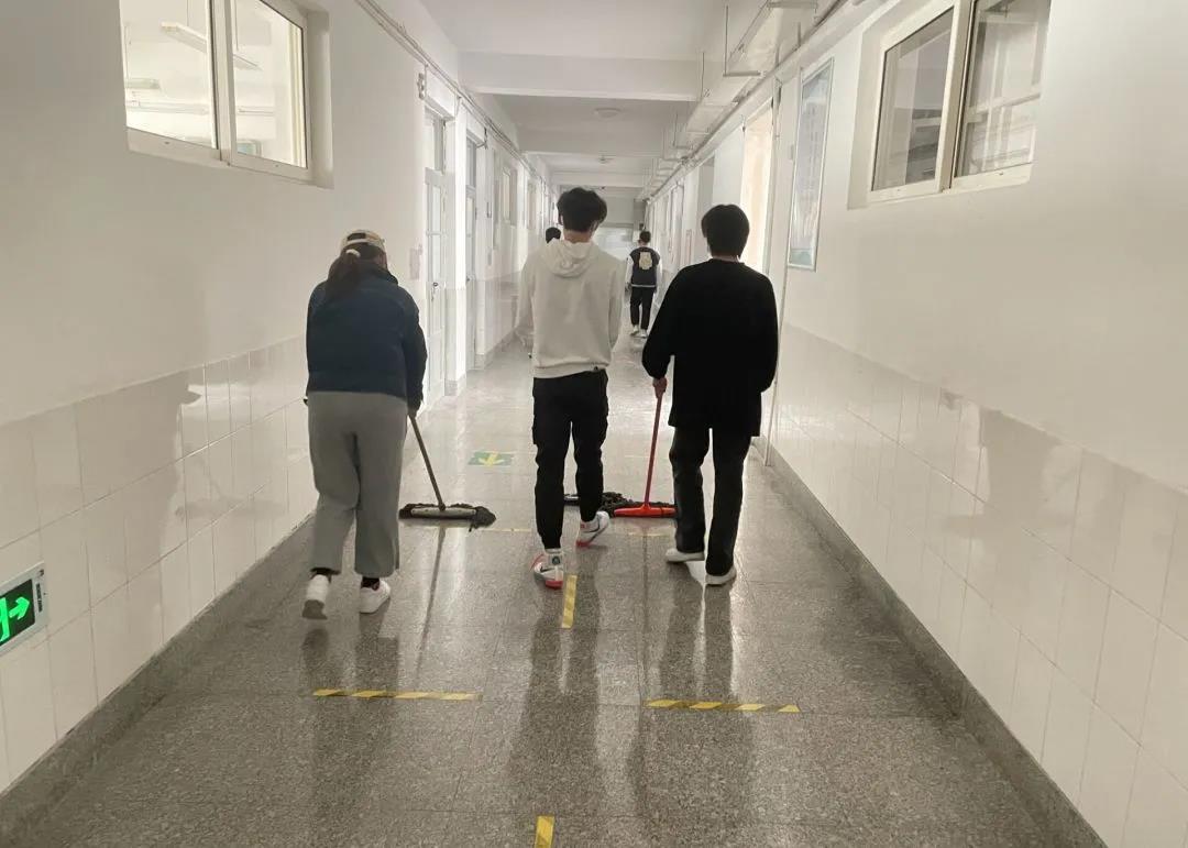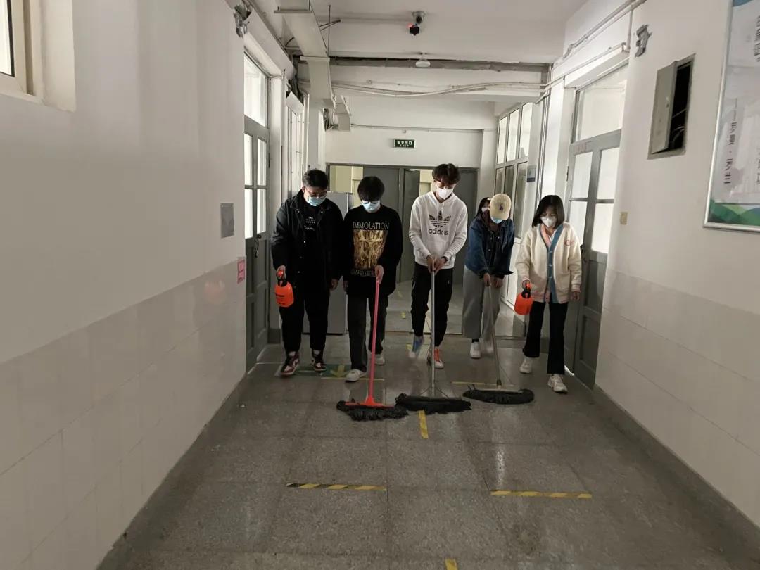 本次活动每位学生会干部更是积极参加,他们分工明确,合作默契,他们带着拖把、拿着喷壶迅速行动起来,对教学楼进行了全方位、地毯式的消毒,不放过教学楼的每一个角落。为的就是能让同学们有一个健康的学习环境。健康是基于环境的基础上的,没有一个良好的环境条件,健康也无从谈起。所以,打扫好同学们的学习环境就相当于呵护同学们的健康。