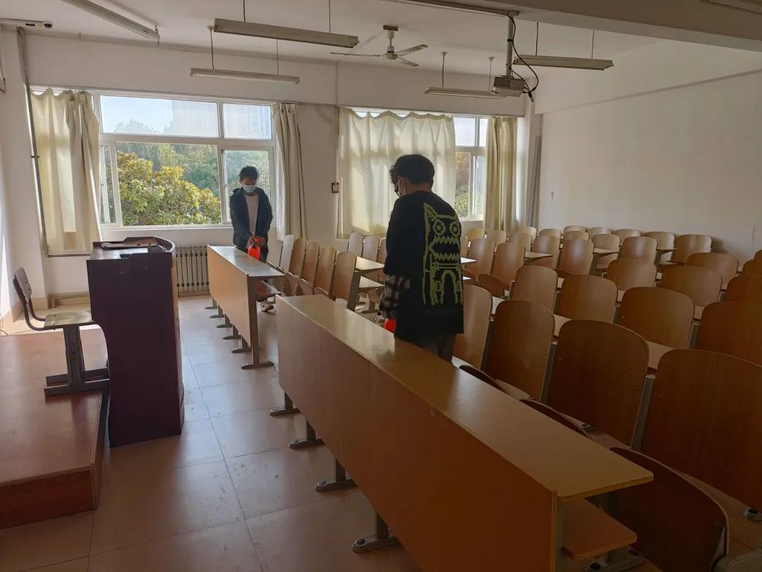 在经济与管理学院主席团和团总支牵头下,学生会干部对教学楼进行了认真严谨的消毒工作。学校是人员密集的场所,一旦出现传染性疾病,则极有可能大肆蔓延,引起学生感染导致流行,甚至爆发流行,对校园内部正常教育教学秩序产生严重的影响。因此,做好校园的预防工作尤为重要。面对疫情经济与管理学院更是打起十二分的精神,做好一切防疫工作!