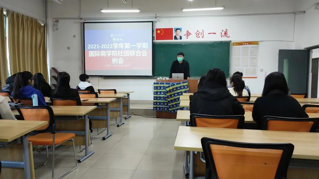 国际商学院社团联合会于2021年11月10日下午4点在知诚楼103召开了社团例会。本次会议由国际商学院社团指导老师薛栋老师主持。