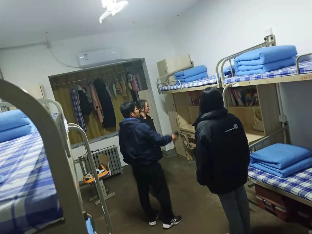随后,两位老师与楼管进行交流,屠承武老师表示,冬季是用电事故的高峰季,同学们一定要提高警惕,提高宿舍安全意识。姜梅梅老师强调,务必杜绝违章电器的使用,确保宿舍无人时电闸已拉下,垃圾及时扔出宿舍楼,全面排除宿舍安全隐患,营造良好的生活学习环境。