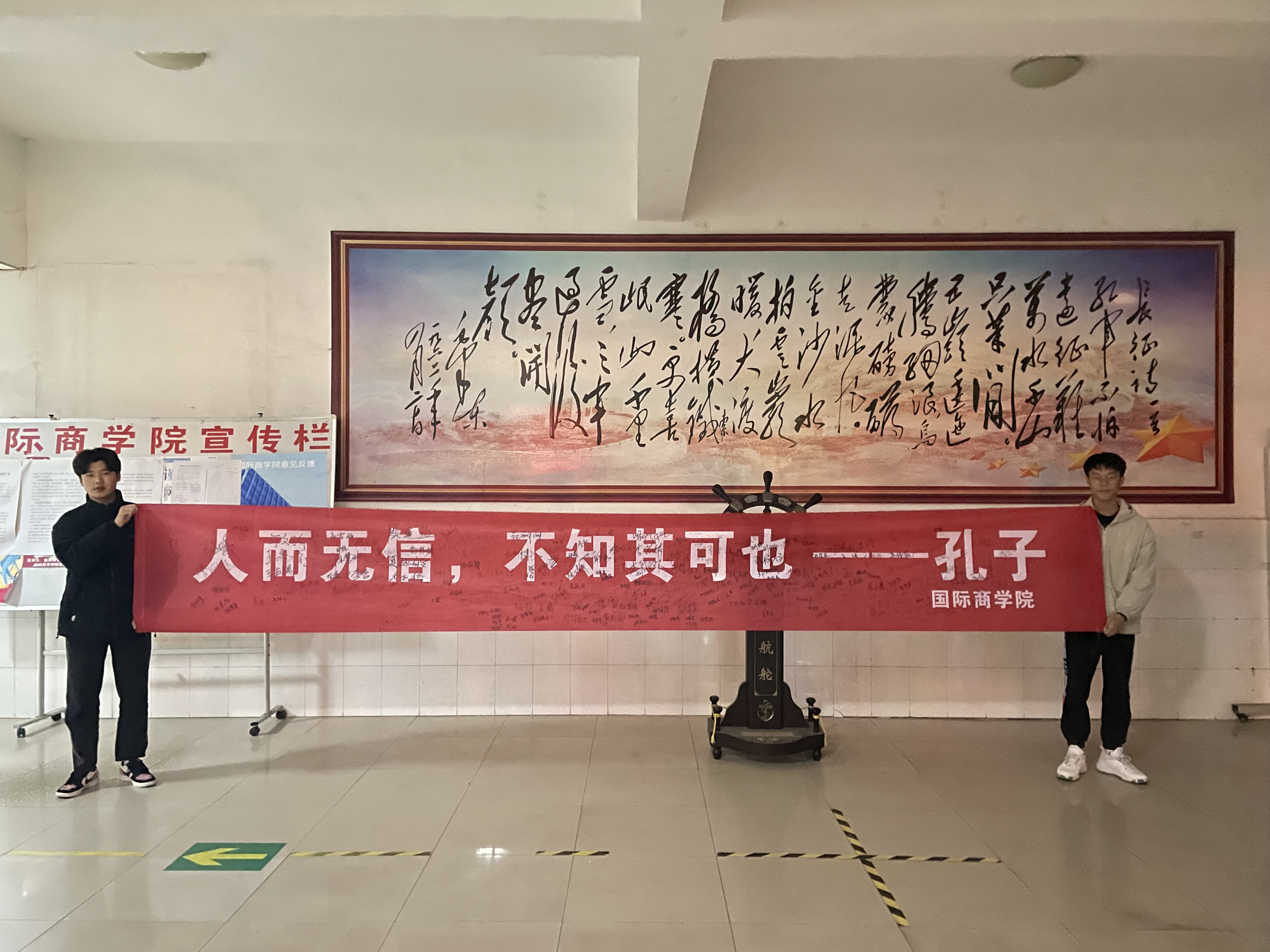 为贯彻落实学校考试要求,形成良好的诚信之风,2021年12月10日下午国际商学院学术研究部举办了诚信考试签字仪式。