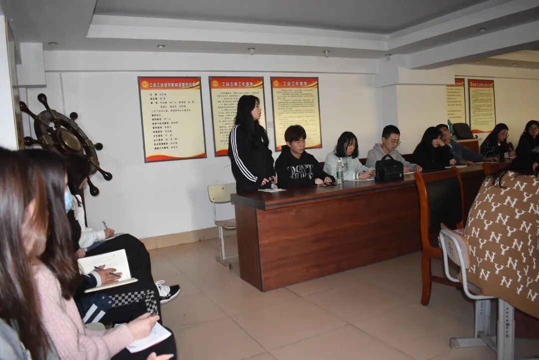 出席本次培训会的有:国际商学院院长助理刘政义,学工主任高海锋,上届主席团成员陈诚,国际商学院各部门部长,部分学生会干事以及21级全体班长。本次“班长班”培训会议由主席团桑亚明主持。