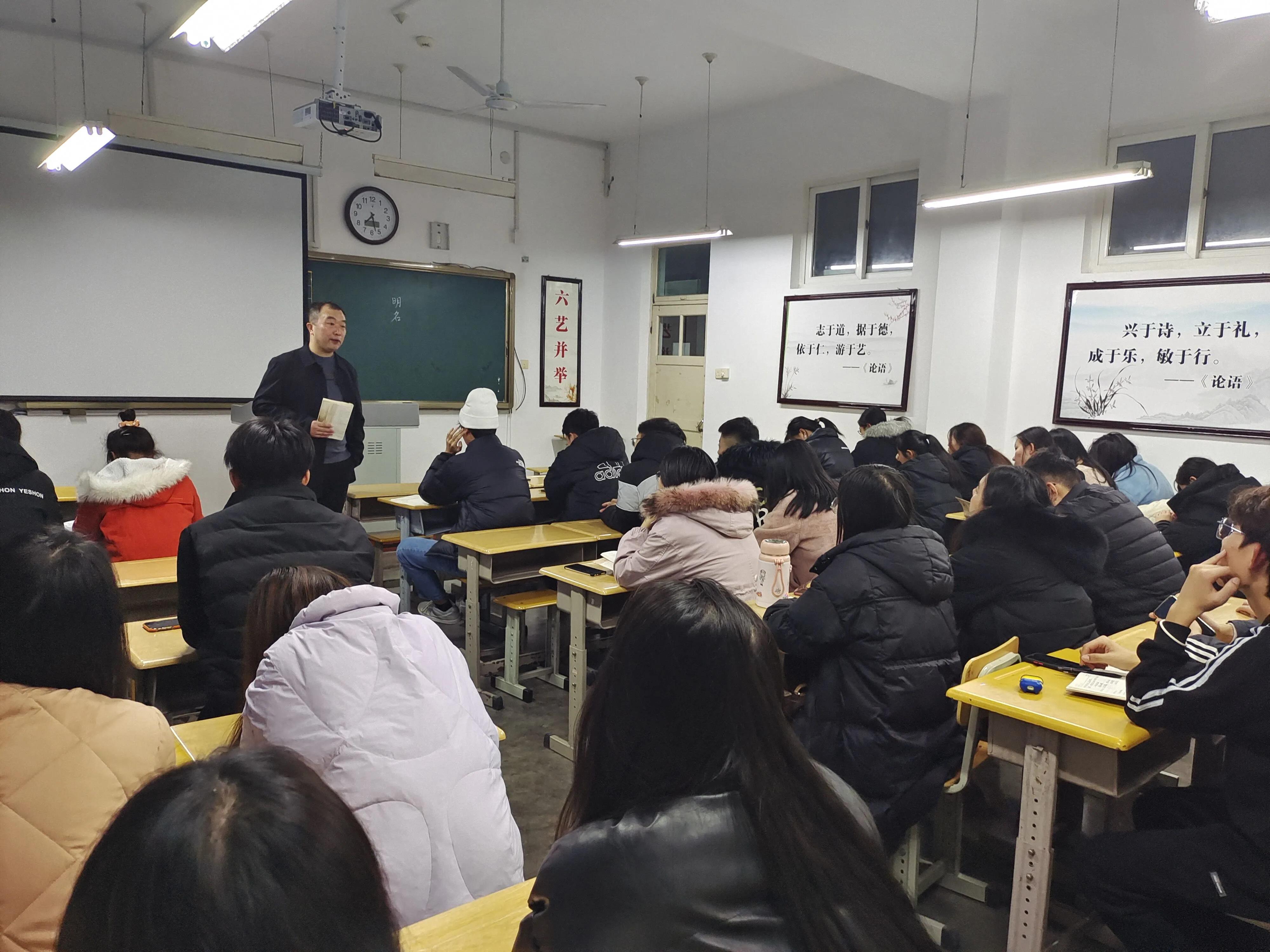 为了使同学们更加了解传统文化,树立起正确的价值观,经济与管理学院于2021年12月8日和2021年12月15日晚上7时,在知明楼一楼国学讲堂开展了国学社课程。本次课程由国学社副院长张维霖进行讲解。