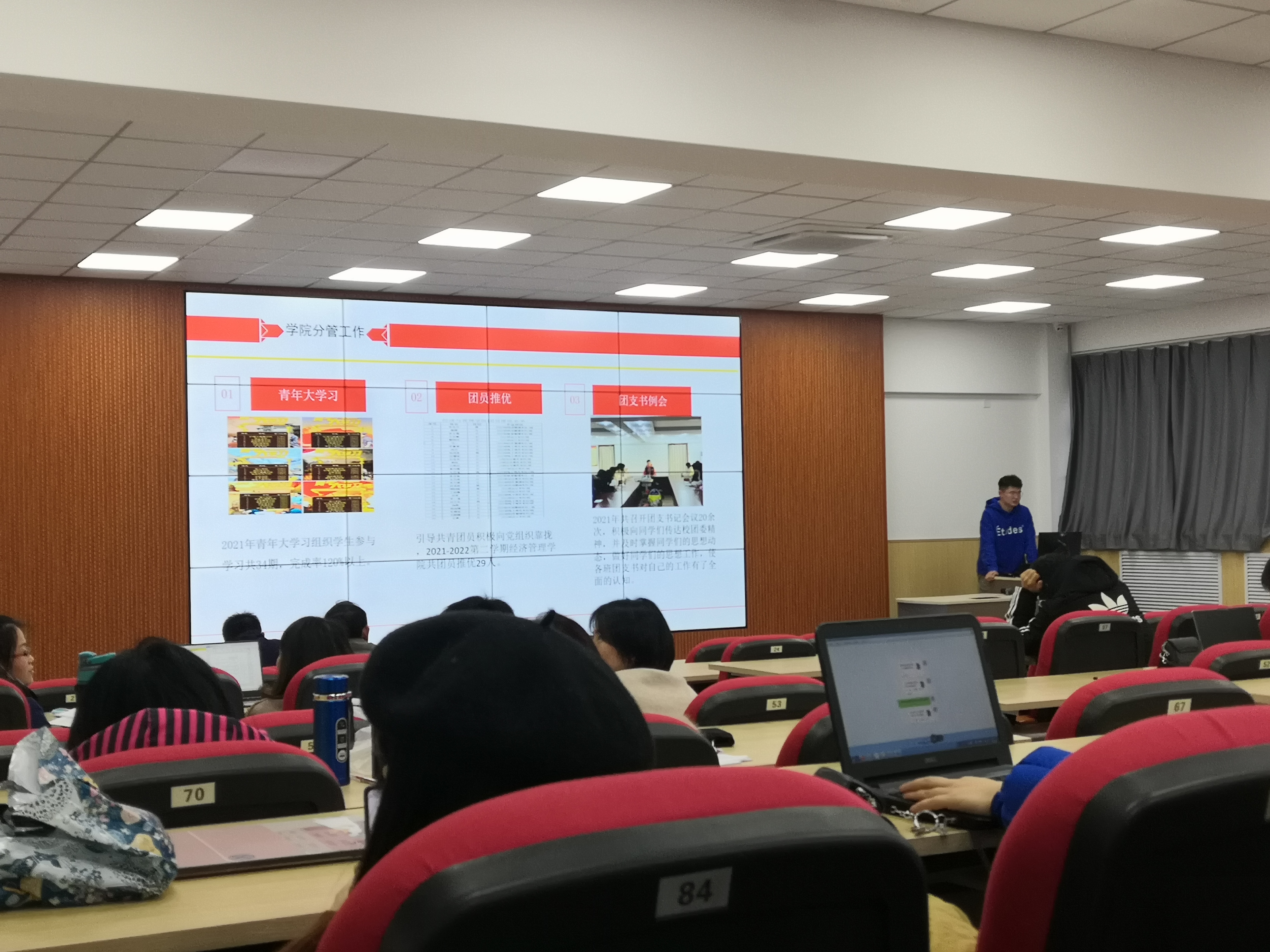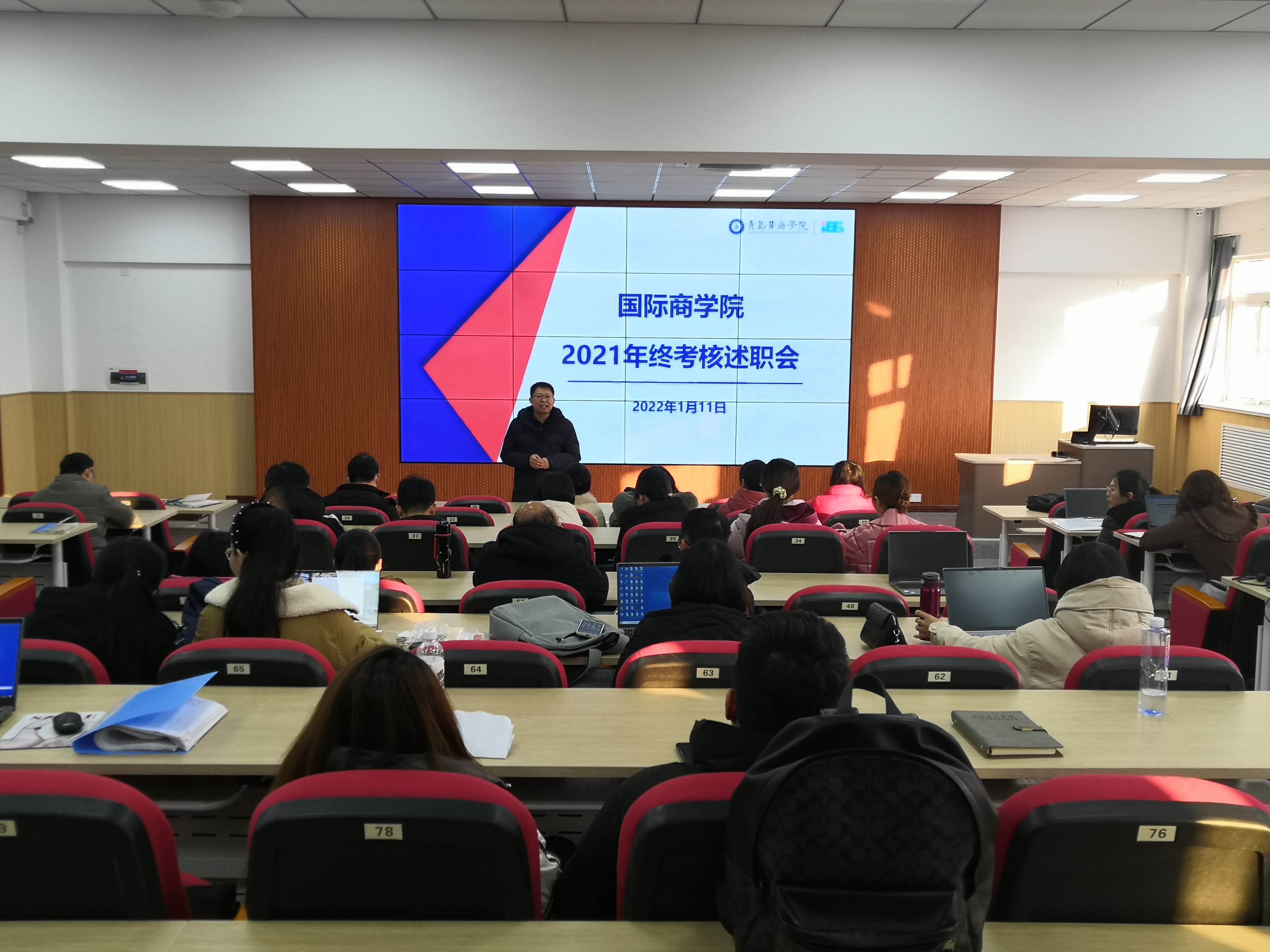为全面总结梳理学院2021年取得工作业绩,国际商学院(经济与管理学院)于2022年1月11日在知新楼二楼东报告厅举行了岗位人员年终考核述职会。述职会共分上、下午两场:上午进行的是学院岗位人员述职,下午是学院全体辅导员述职。述职会邀请普通教师代表、辅导员代表、学院领导担任打分评委。