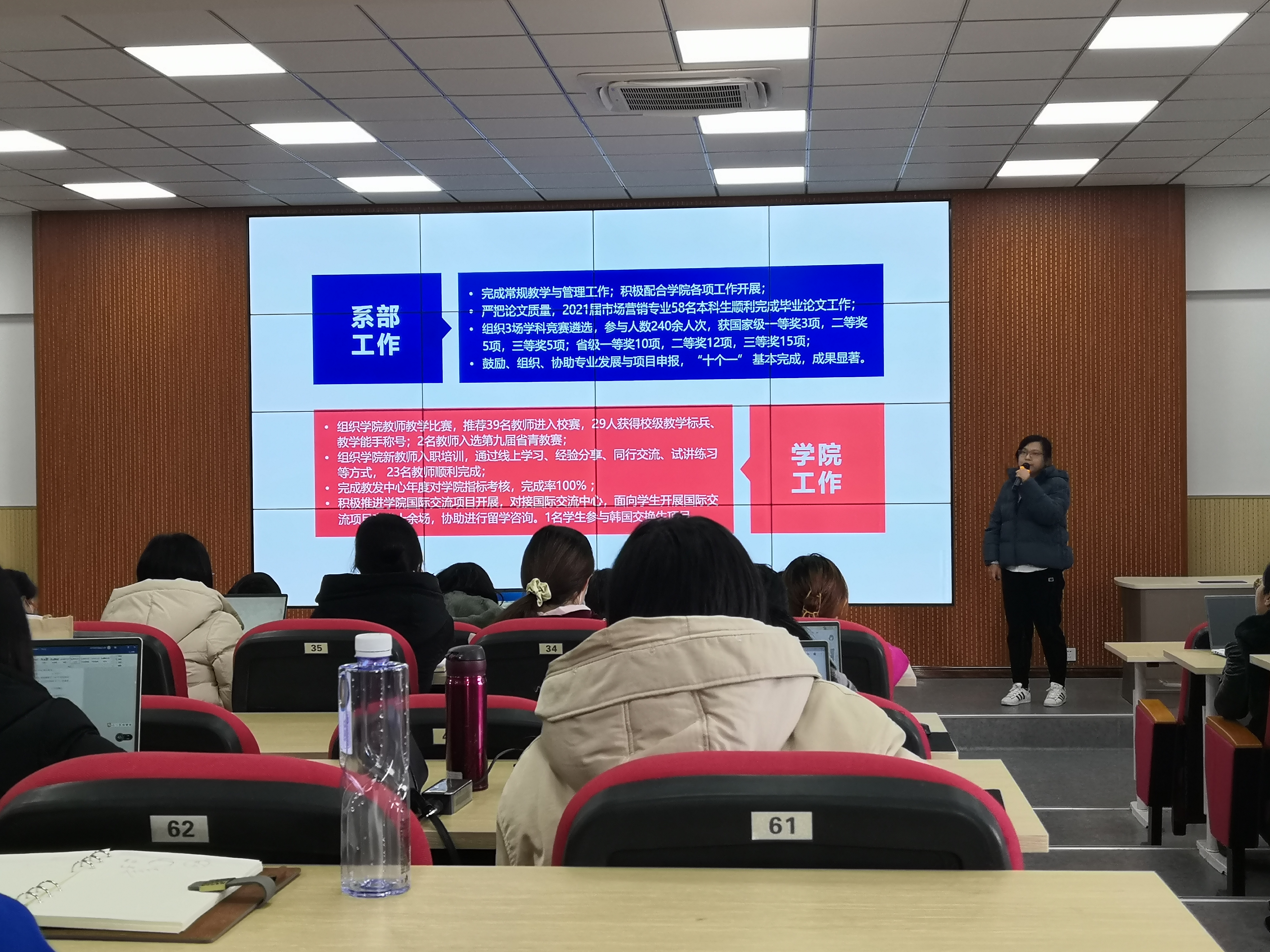 本次考核述职会为学院全面总结2021年工作,谋划2022年工作任务计划目标制定提供了重要参考依据,便于今后工作更好开展,为建设同类高校一流商学院奠定基础。