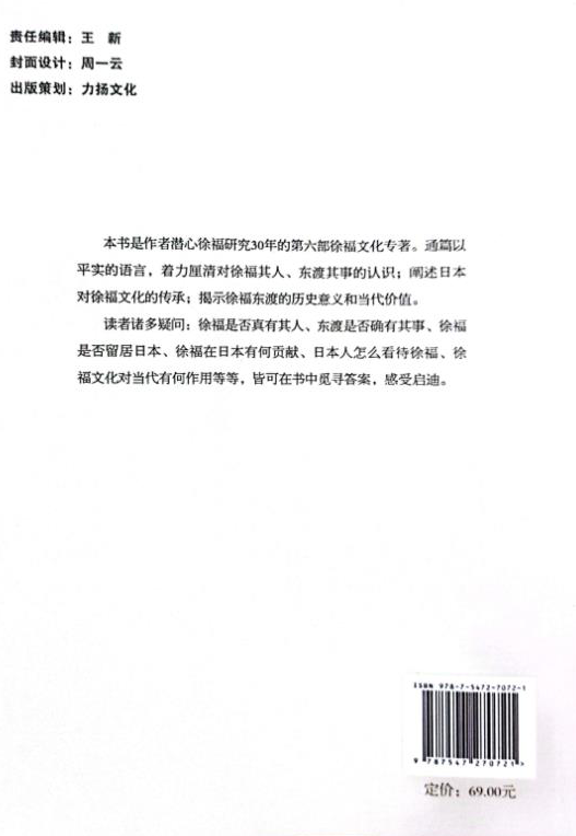 青岛黄海学院琅琊与徐福研究中心特聘研究员、学术顾问张良群先生新著《徐福在日本》一书出版发行。该书是连云港市重点文艺创作资助项目,历时一年多,在张老八十岁生日之际完稿,是徐福研究系列著作的又一重大成果。该书46万字,由吉林文史出版社出版发行。因疫情原因,版权页出版时间为2020年。全书共分为六章:第一章其人其事;第二章日本登陆;第三章文明东传;第四章走进人间;第五章友好交往;第六章铭记友人。