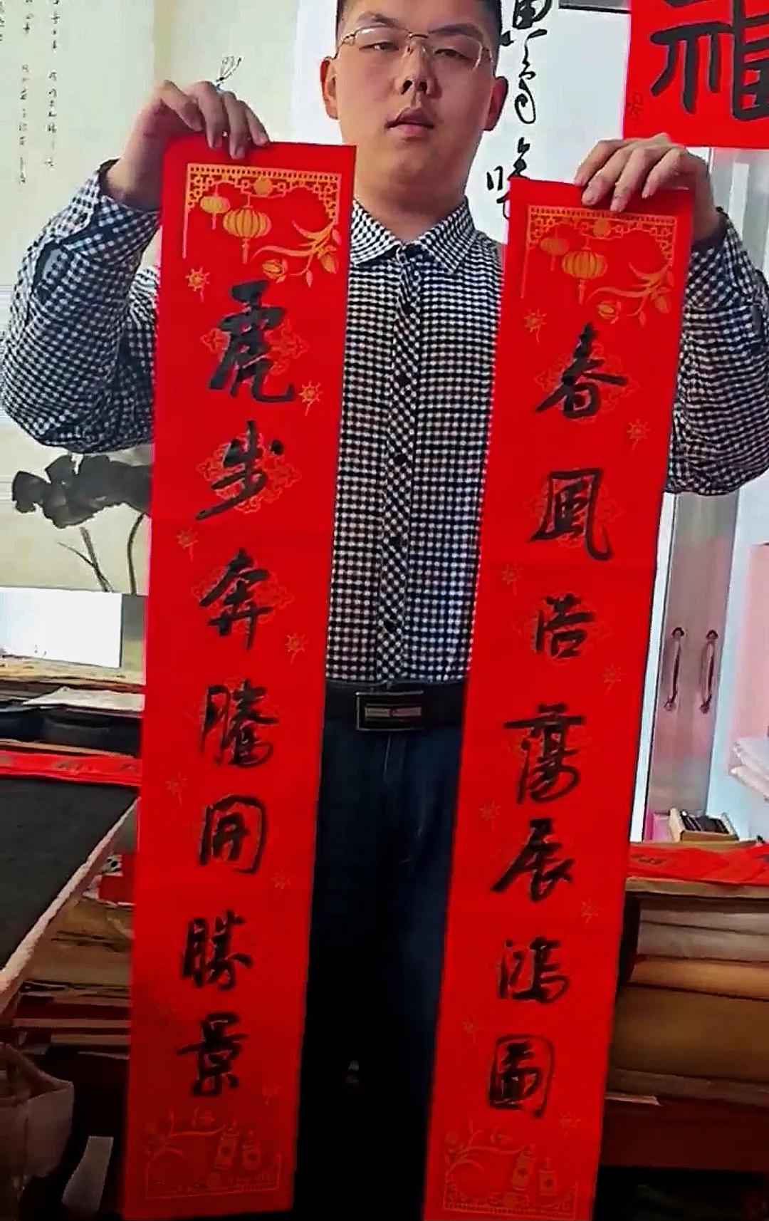 “虎步奔腾开胜景 春风浩荡展鸿图”