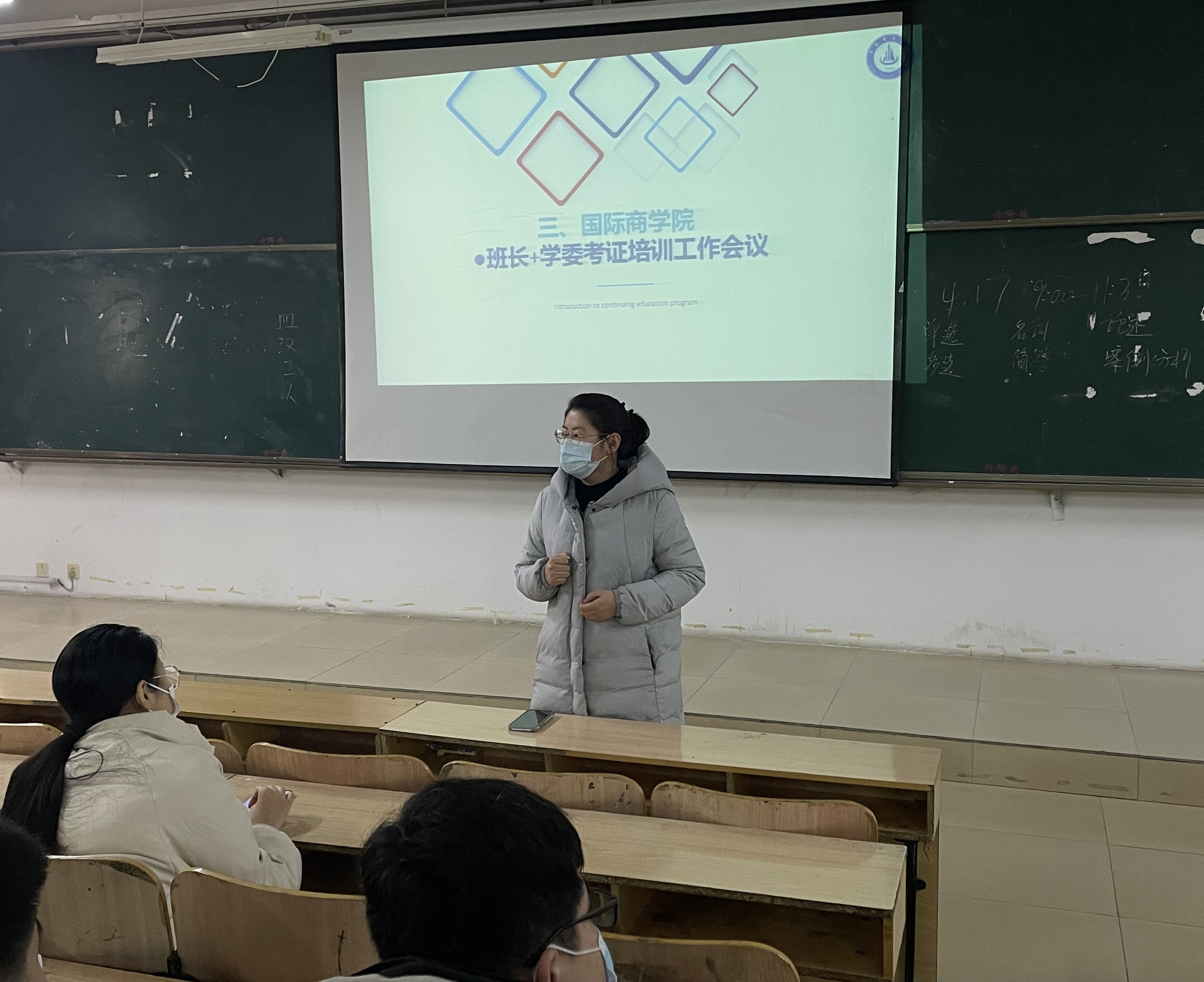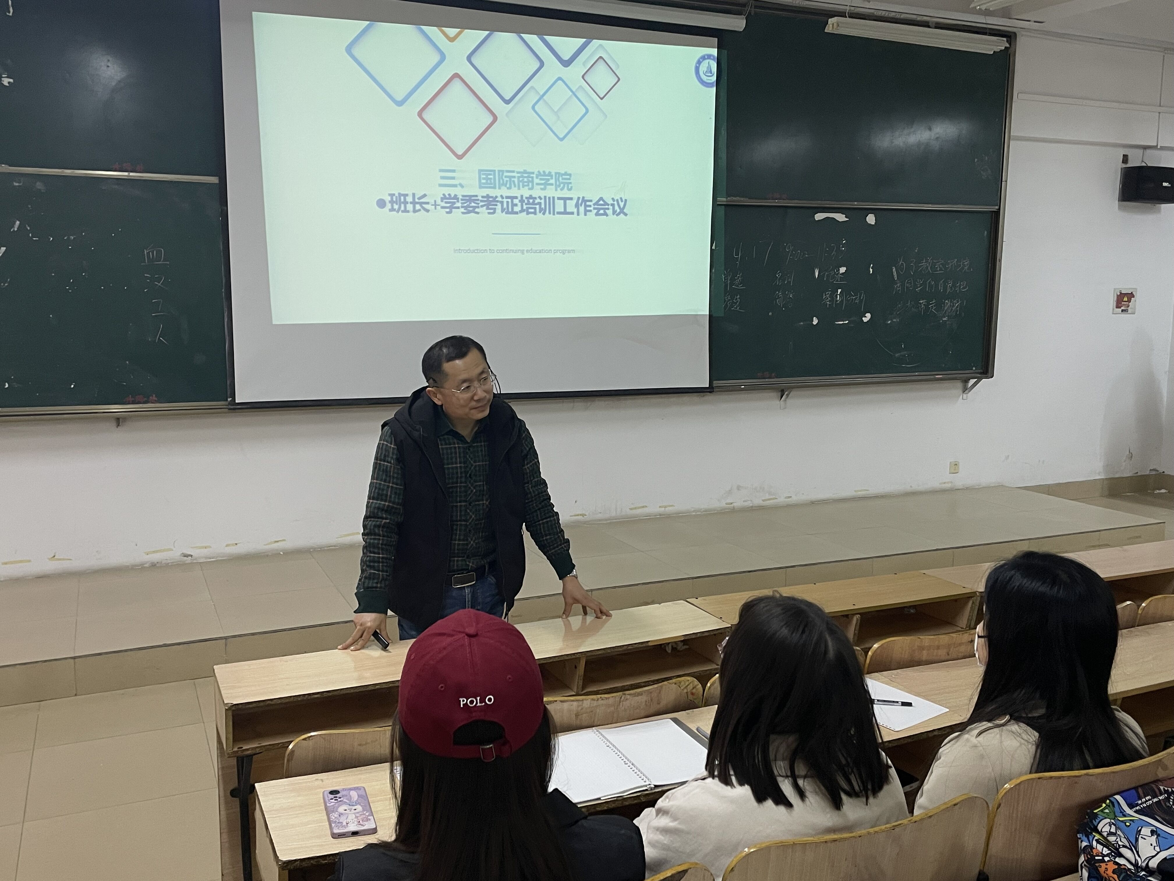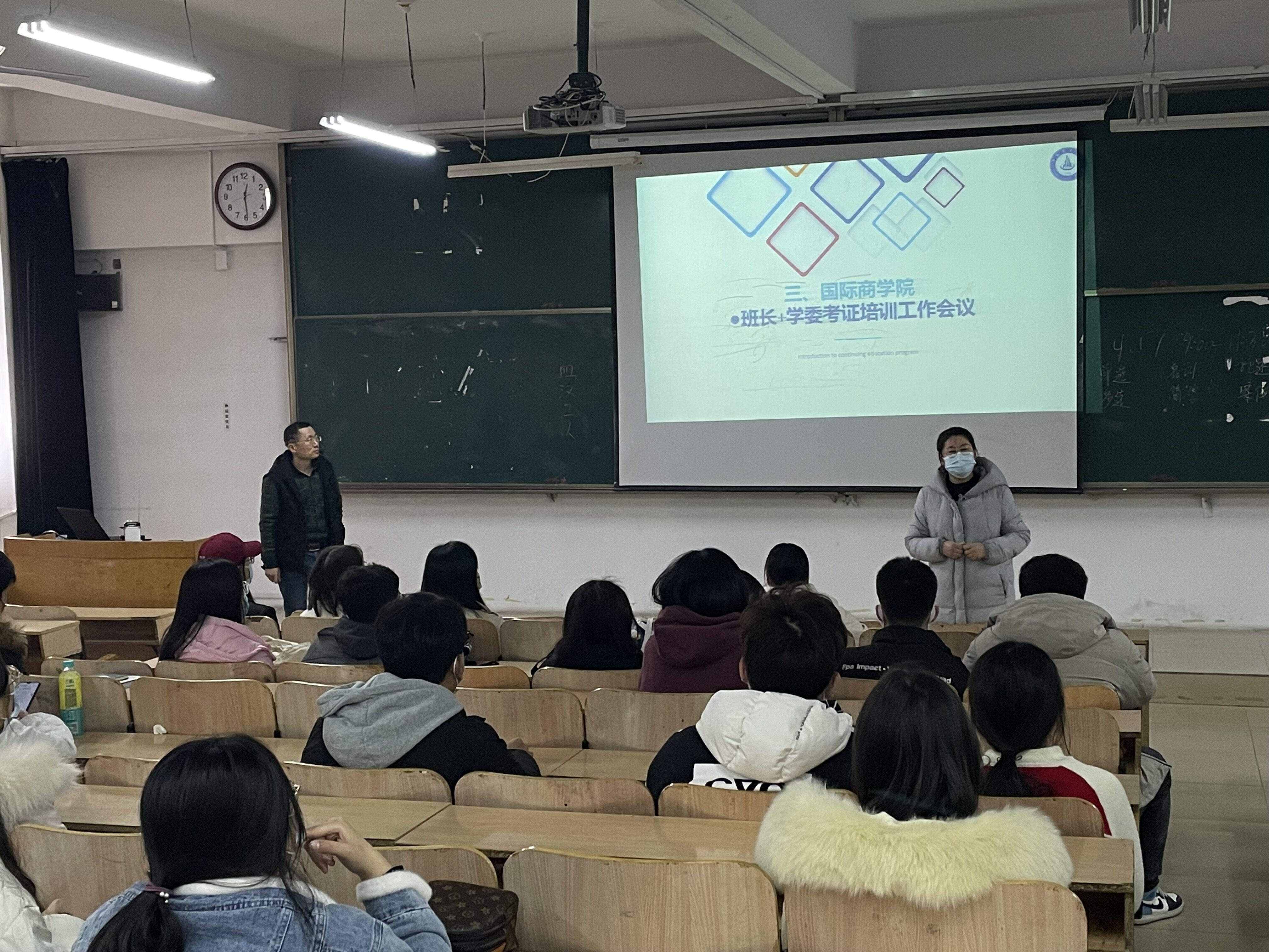 为进一步提升大学生专业知识水平,落实培养创新型、应用型、复合型人才。国际商学院于3月2日在知新楼二楼西配多媒体教室组织全体班长与学委召开了考证培训工作专题会议。国际商学院辅导员鲁昀老师参加,继续教育中心负责人刘金田老师主持。