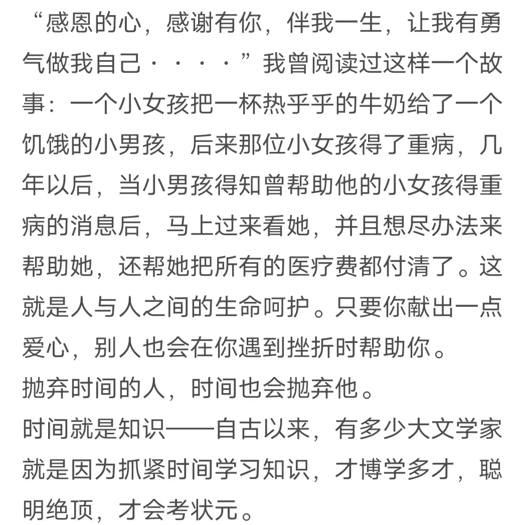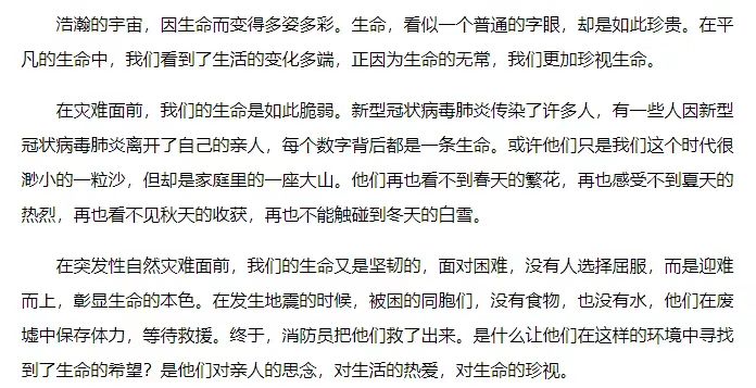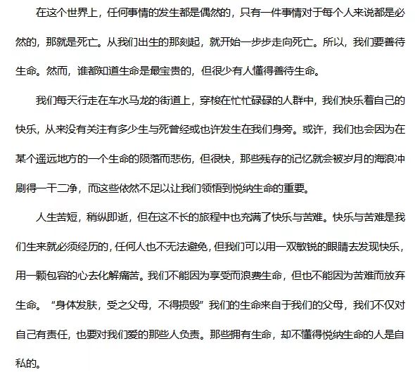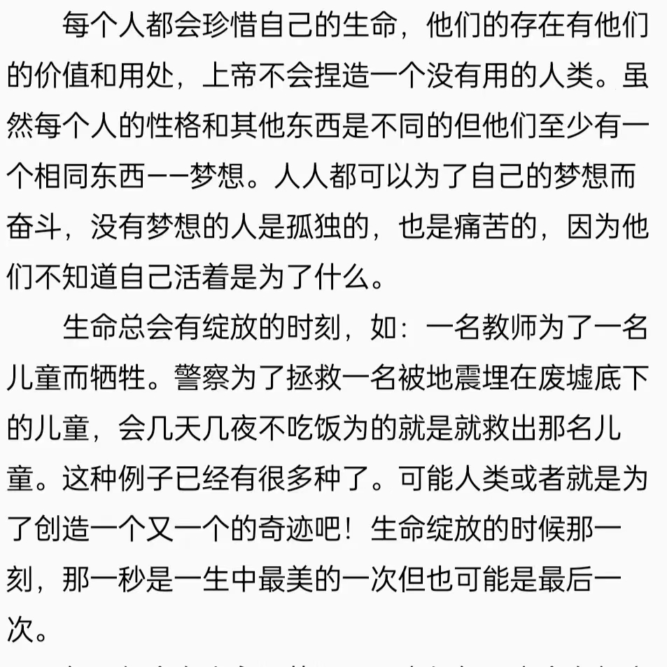 生命是宝贵的,神圣的,也是高贵的,美丽的。生命是有价值的,有尊严的。借用小塞涅卡的名言“内容充实的生命就是长久的生命,我们要以行为而不是以时间来衡量生命。”启发我们思考生命的意义与真谛。