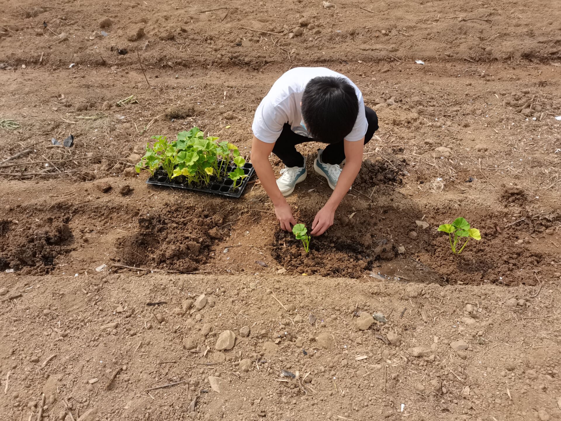 一棵棵在微风中摇曳的南瓜苗是同学们种下的希望,相信在不久的将来,同学们终将收获幸福的果实。